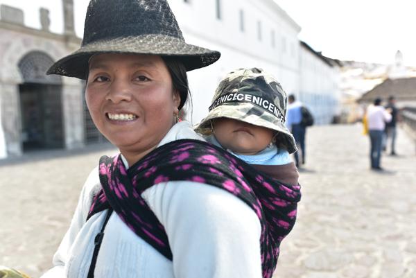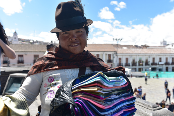 Quant aux Quechuas qui émigrent vers la ville, comme ici à Quito, sur cette place San Francisco, ils vivent de tout petits métiers précaires, échappant à la misère en vendant des tissus traditionnels, des châles et autres ponchos dont ils reversent une partie des bénéfices à ceux qui les exploitent. Une vie de misère.