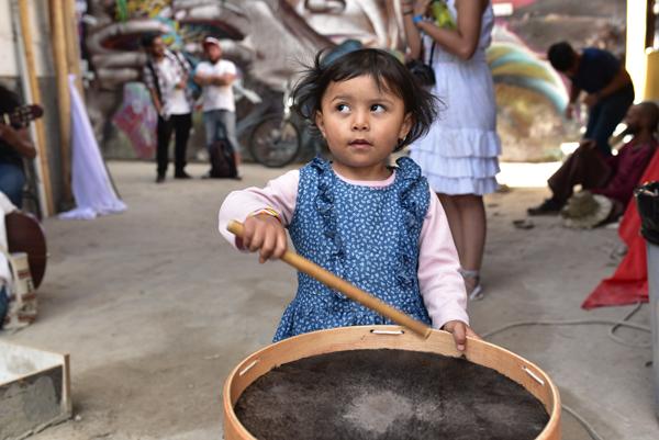 Léa est aux anges et m’emmène à la découverte de cette autre facette de l’ancienne capitale inca. À quelque 200 mètres au nord de la Plaza San Franciso, on tombe nez-à-nez avec un atelier d’artistes. Le must pour Léa. Une petite fille nous accueille dans la cour en frappant le cuir d’un gros tambourin.