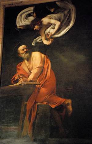 Du coup, Le Caravage se remit au travail pour L’inspiration de Matthieu…, qui fut jugée blasphématoire !