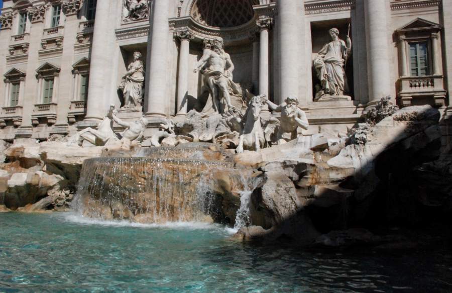 À deux pas de là, voici enfin la célèbre Fontaine de Trevi. La fontaine est alimentée depuis plus de 2000 ans par l’aqueduc de l’Eau-Vierge, qui doit son nom à une vieille légende romaine. Une jeune fille aurait trouvé la source et l’aurait indiquée à des soldats romains… sauvant ainsi sa virginité ! C’est Agrippa, le gendre d’Auguste, qui aurait ordonné la construction de l’aqueduc.