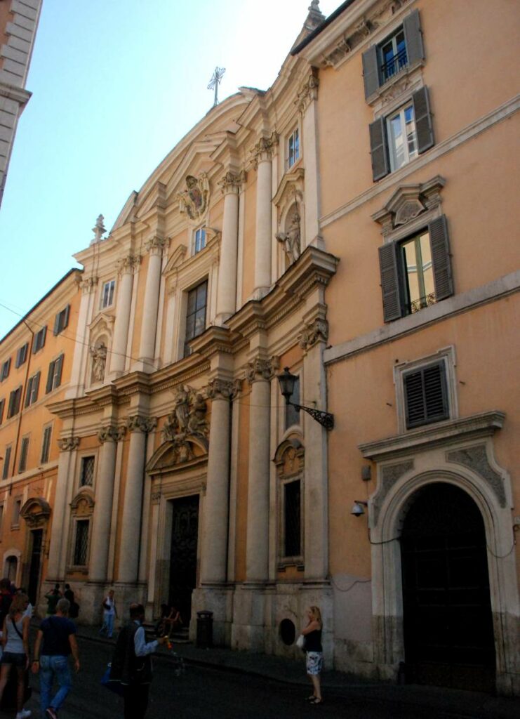 En allant vers la Piazza de Spagna, arrêt obligatoire à la basilique Santi Ambrogio e Carlo, considérée comme l’église nationale des Lombards et des Milanais. Construite en 1612 à la place d’une église du XVe siècle. Elle est vouée à saint Ambroise de Milan et saint Charles Borromée. L’église fut construite selon un projet d’Onorio Longhi et achevée par son fils Martino Longhi et Pierre de Cortone qui dessina la coupole (la troisième de Rome) et la fit décorer de stucs (1669).