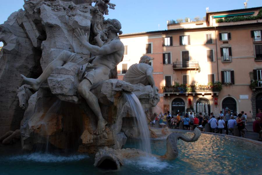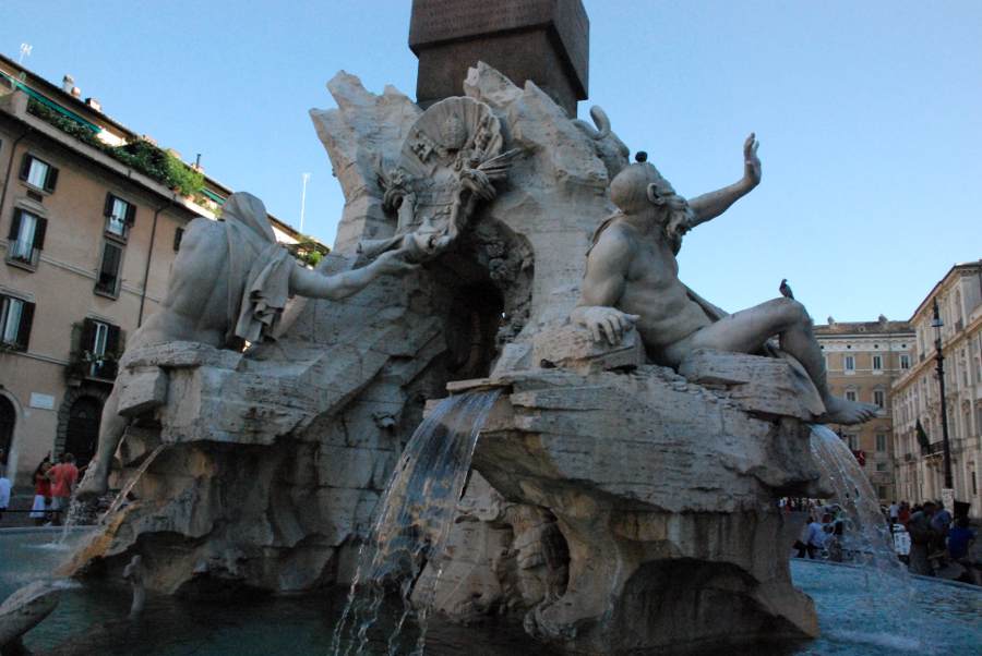 Mais la Piazza Navona rayonne aujourd’hui grâce à son chef-d’œuvre planté en plein milieu de la place : la fontaine des Quatre-Fleuves du Bernin. Elle rappelle les fêtes nautiques qui étaient organisées ici au XVIe siècle et à l’occasion desquelles la Piazza Navona était inondée.