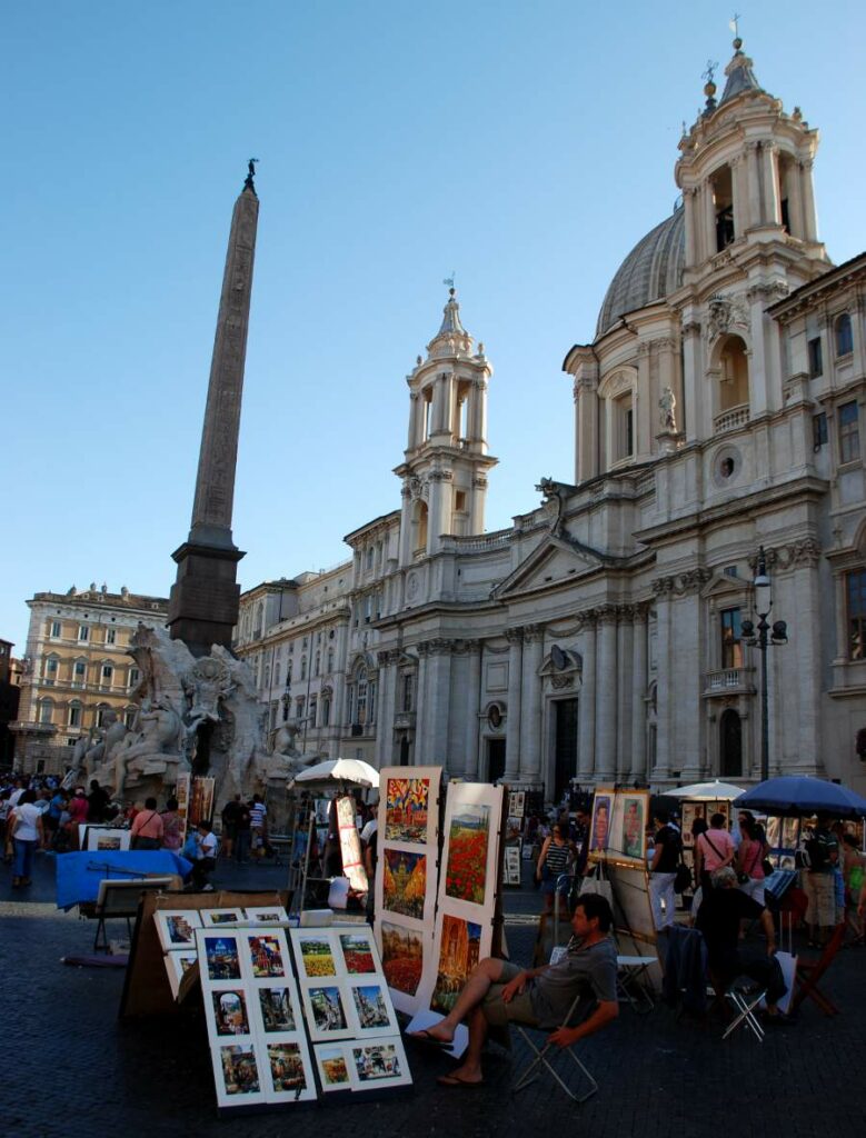 Samedi 20 août. Déjà 16 heures. Mal aux pieds et mal aux hanches. Rude journée. Heureusement nous voici sur la Piazza Navona pour faire une halte prolongée et nous reposer un peu. Et quelle place !