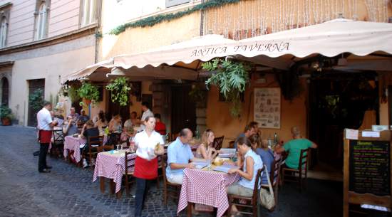 Samedi 20 août. À peine 18 heures, mais déjà une faim de loup. Fatigue et mal aux pattes. Dîner à la terrasse de l’Antica Taverna. Délice de la cuisine italienne. Le vin coule à flots. Ivresse. Une armée de serveurs veillent à notre bon plaisir. Elle est pas belle, la vie !