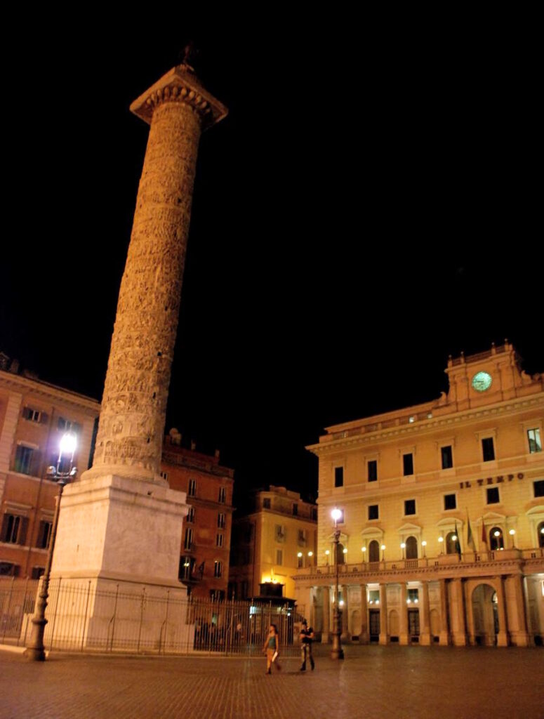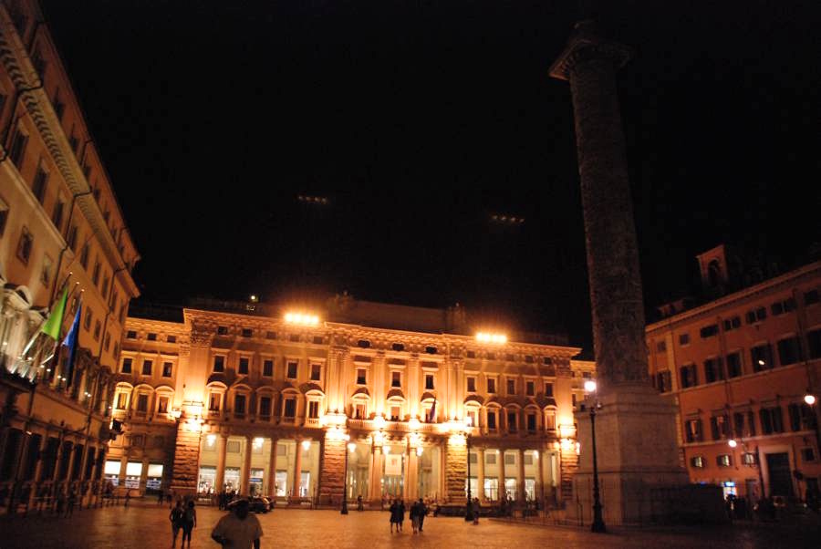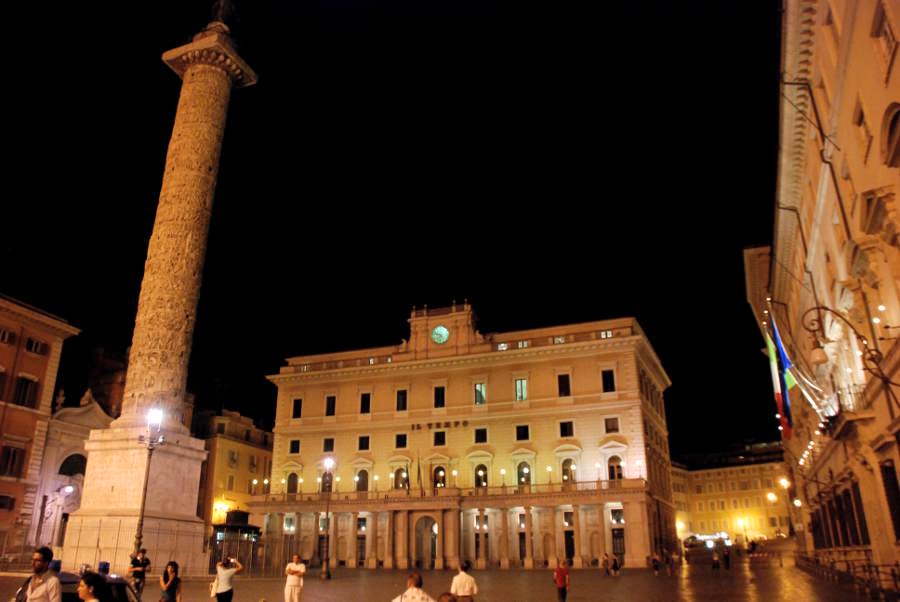 Allez zou, encore un petit détour par la Piazza Colonna illuminée par les lumières jaunes de la ville, et on file à l’hôtel se reposer enfin. Quelle journée !