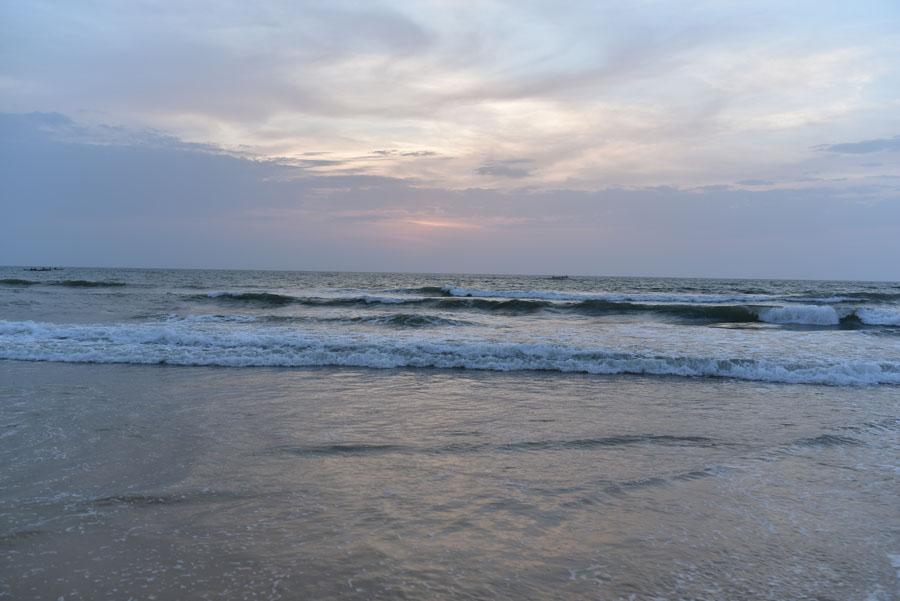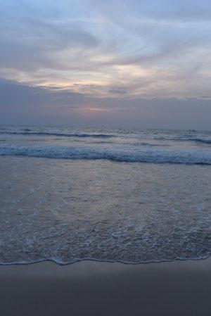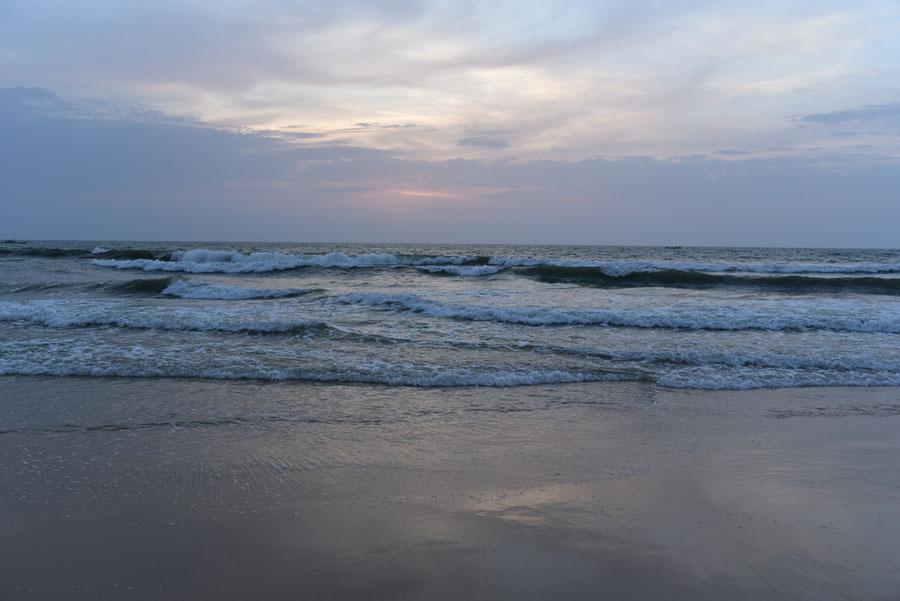 La nuit tombe et j’essaie de capter la lumière du soleil scintillant sur les vagues. Il me faut aller vite. La nuit en Afrique tombe à toute allure.
