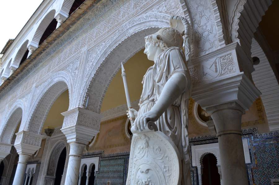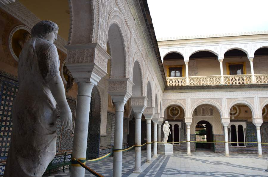 Bon, alors, pourquoi la Casa de Pilatos et pas une autre demeure de Séville ? Parce que ce palais construit au XVe s. est sans doute la demeure seigneuriale la plus éblouissante de la ville. Et voilà, il suffisait de le demander, non ? Son nom vient de Pilate (Ponce de son prénom) dont la maison à Jérusalem était assez semblable à celle-ci. Car le propriétaire des lieux était un passionné de l’époque antique. En même temps, il a grandi en pleine Renaissance… Pas besoin d’aller bien loin pour s’en rendre compte.