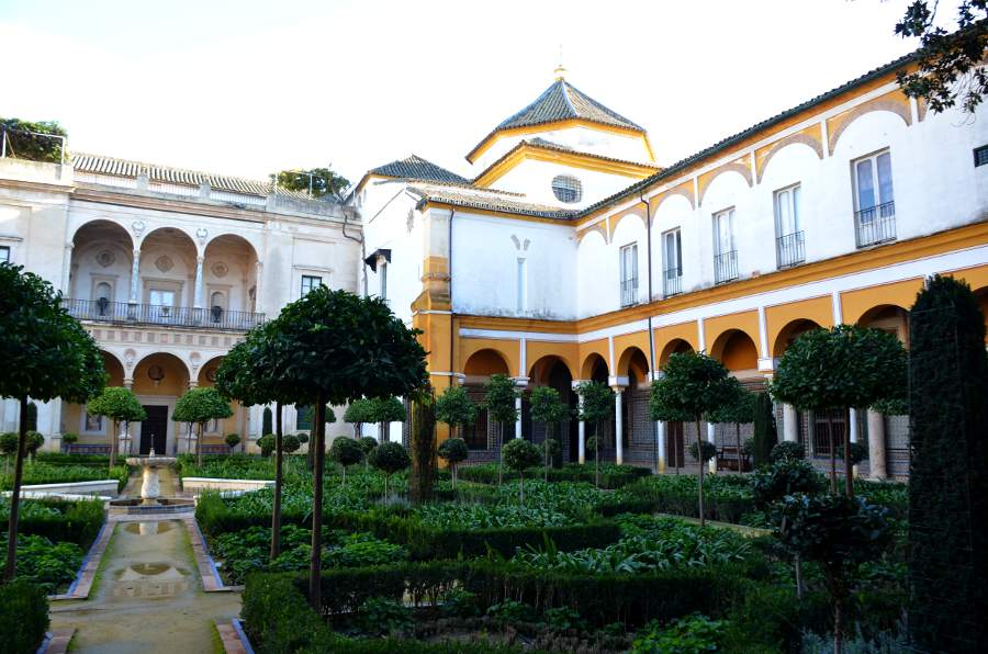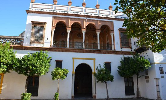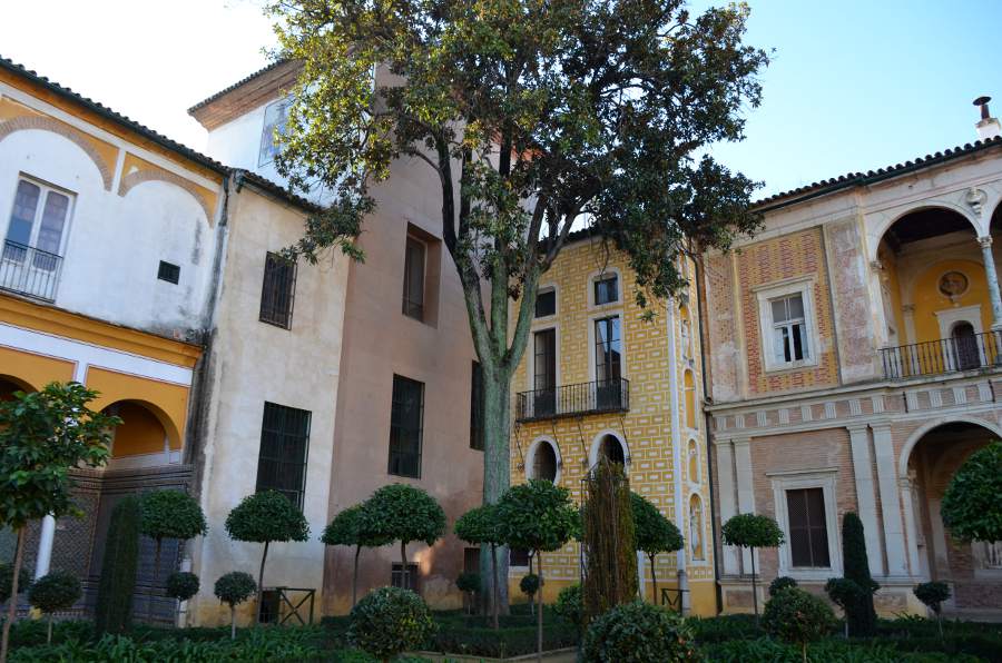 Séville n’échappe pas à cette règle. Nul besoin donc d’aller très loin pour se rendre jusqu’à ma première étape, ce matin. Il suffit de redescendre une fois encore la calle Alhondiga, puis de stopper à mi-chemin, de bifurquer à gauche vers l’église San Ildefonso, puis on arrive pile-poil devant la belle façade blonde de la casa de Pilatos.