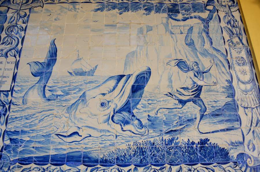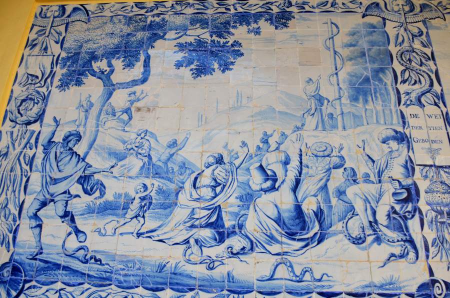 Passé les portes de l’hôpital, on débouche sur un charmant patio central au centre duquel trône une jolie fontaine. Des volées d’arcades ceinturent le patio. Sur les murs s’affiche une belle collection d’azulejos relatant quelques événements marquants de l’Ancien et du Nouveau Testament, de Jonas à la Passion du Christ.