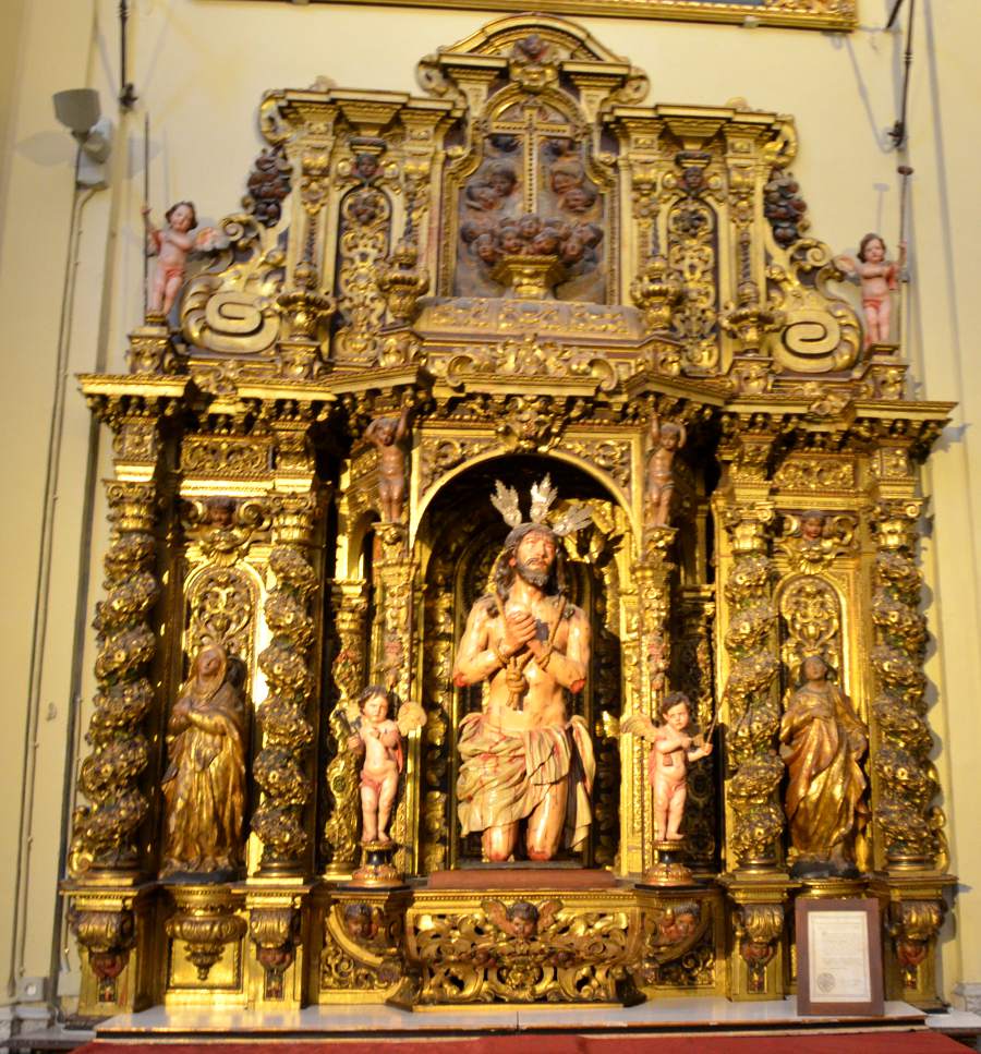 Mais le principal intérêt de l’hospice n’est autre que son église, et notamment à sa décoration intérieure due à Miguel de Mañana, personnage du XVIIe siècle à la vie dissolue qui inspira plus tard à Molière son Don Juan. Car à force de péchés, Miguel de Mañana ressentit le besoin de faire bâtir une église pour le pardon de ses fautes. Il fit bâtir cet hospice et se fit enterrer au seuil de l’église.