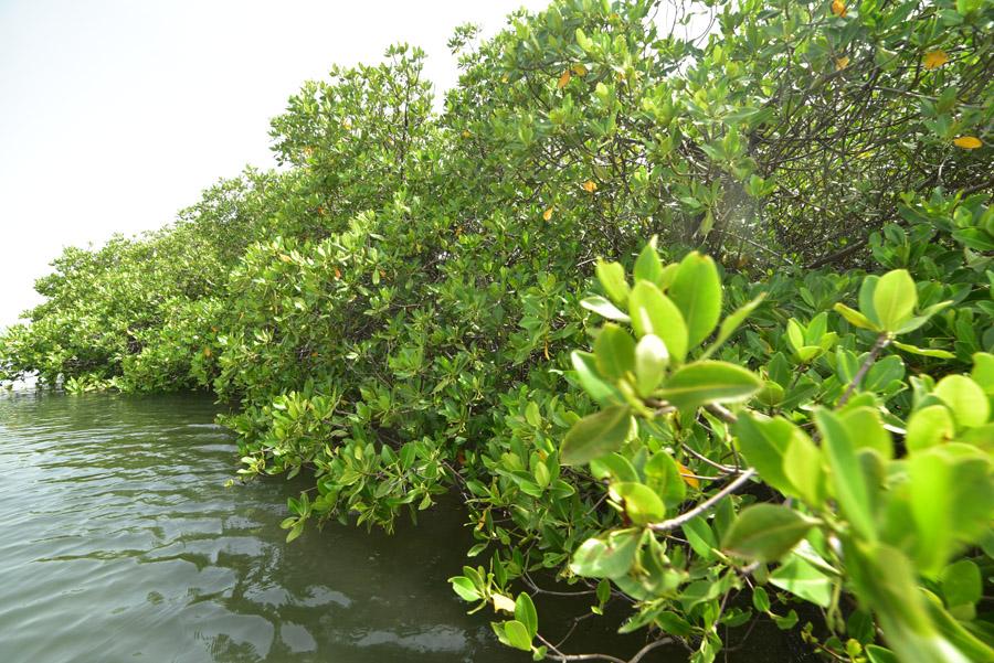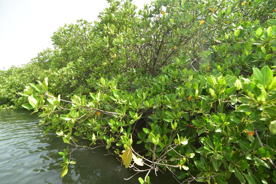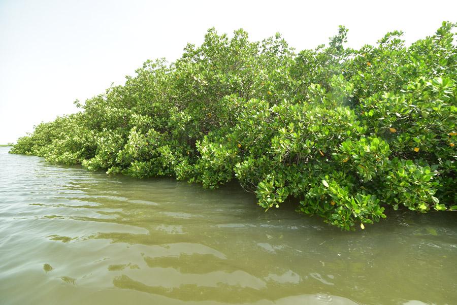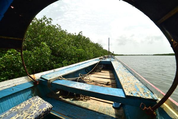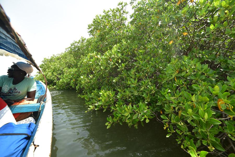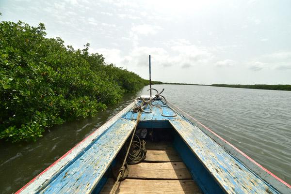La pirogue poursuit son chemin et file le long de la mangrove en prenant soin d’éviter les racines des palétuviers qui pourraient nous faire chavirer.