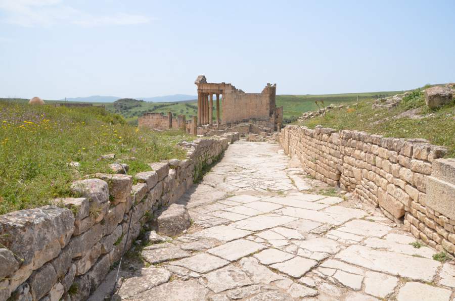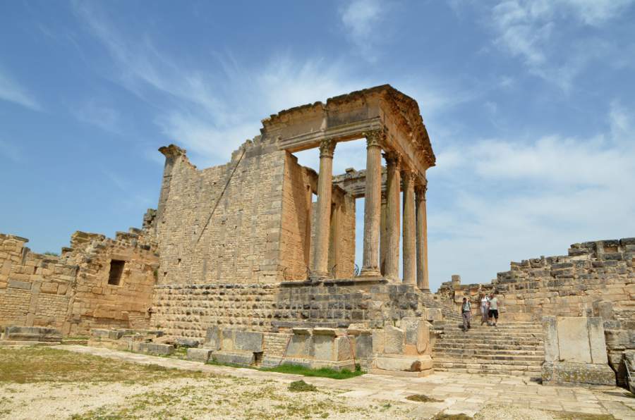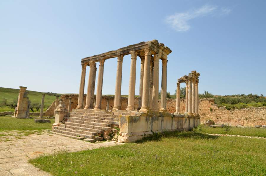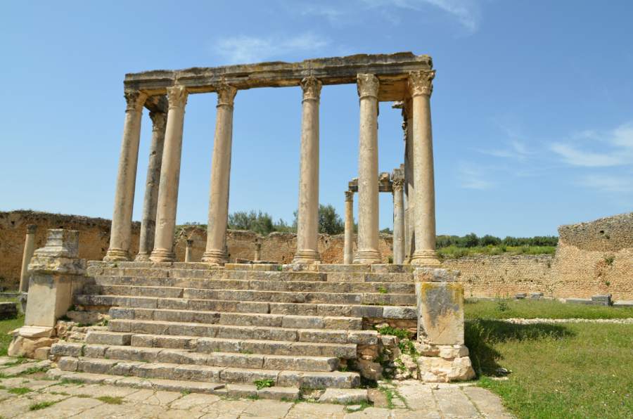 Les temples à Dougga sont presque aussi nombreux que les oliviers entourant le site, c’est dire. Mais s’il en est un qu’il ne faut surtout pas manquer, il s’agit bien du temple de Junon Caelestis.