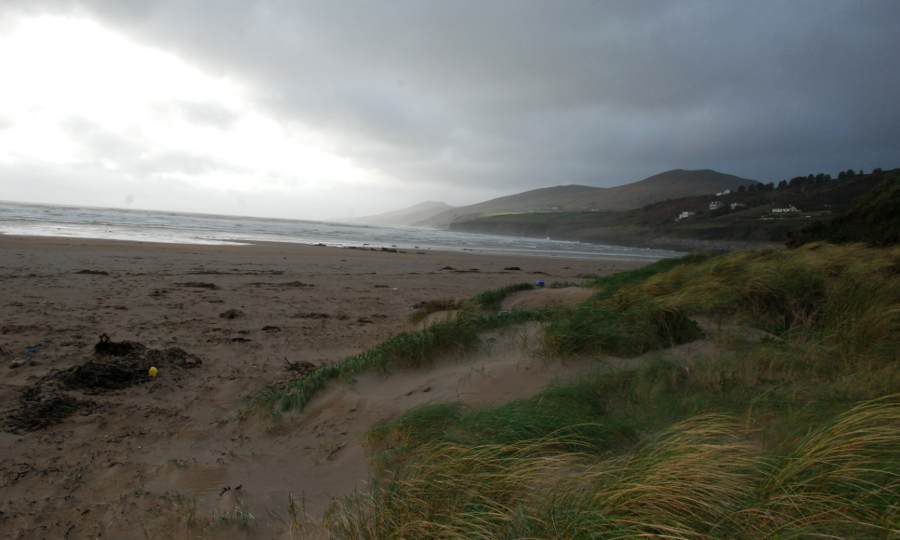 À deux pas d’Inch, au sud de la péninsule, je trouve une belle plage de sable blanc hérissée de joncs et de bruyères, et balayée par le vent. La mer est démontée. Qu’importe, une poignée de fous en combinaison brave la tempête et s’en va surfer sur les vagues. Ils sont fous ces Irlandais !