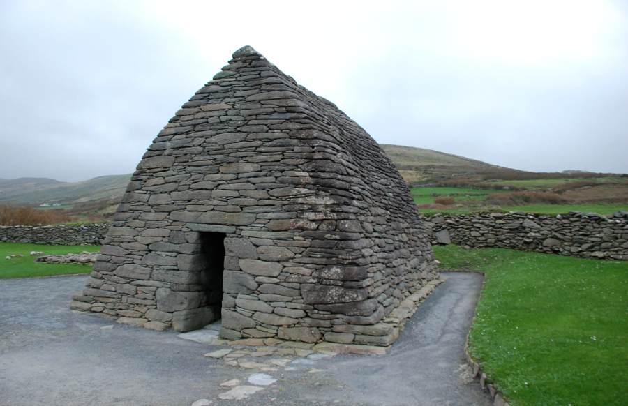 Je continue mon tour de la péninsule avec l’appréhension que cette satanée voiture me lâche… Route sinueuse au bord de la falaise. Le vent souffle. Je trouve enfin ce que je cherchais : l’oratoire de Gallarus, une petite chapelle en forme de coque de bateau renversée. Le plus monument de ce type en Irlande. Entre le VIIIe et le IXe siècle. Pour y accéder, il faut remonter un petit chemin de pierre. Dépaysement total. On se croirait dans un film.