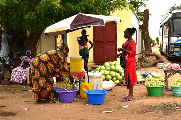 Voilà pour les Wolofs. J’essaierai de parler des autres ethnies plus tard dans mon récit. Pour l’heure, je me concentre sur la route et sur ces femmes aux boubous colorés, aux robes aux teintes flamboyantes, qui vendent sur le bord de la route les fruits et légumes de leur champ, et d’autres de grossistes.