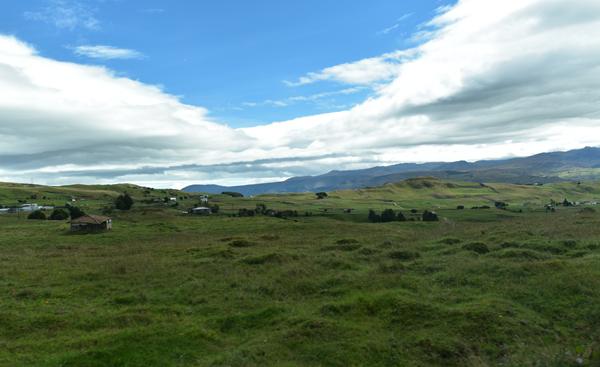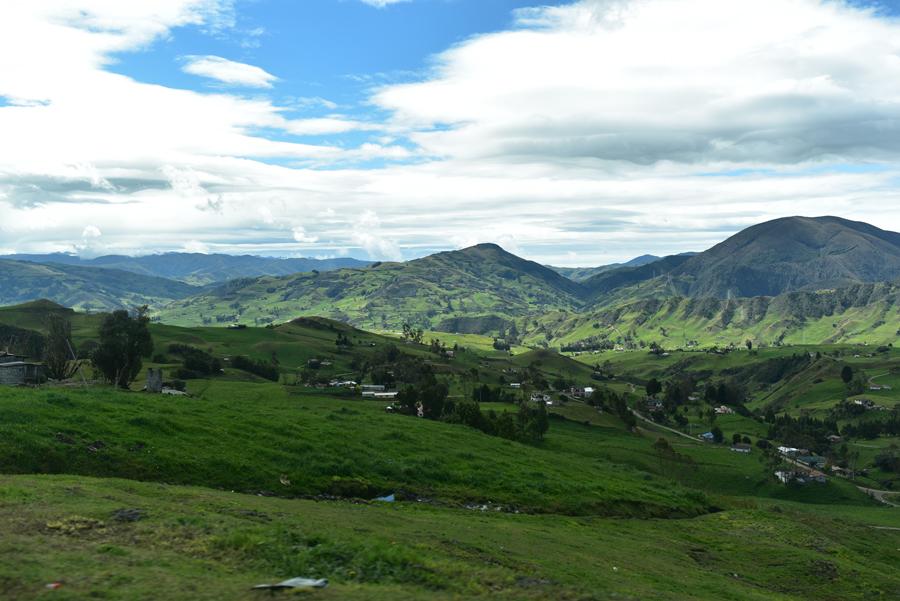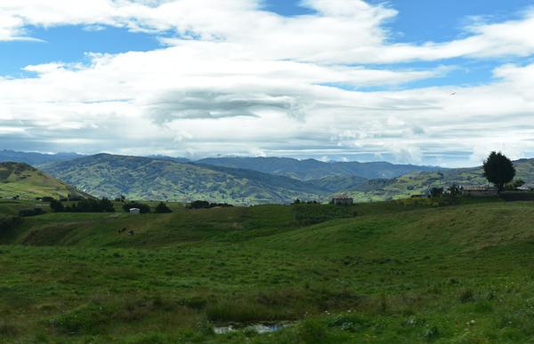 Une vallée verdoyante amène peu à peu au site inca. Impossible de savoir si la route suit ou non le fameux chemin de l’Inca qui reliait l’empire, de Quito à Cuzco.