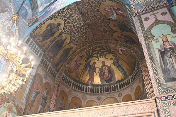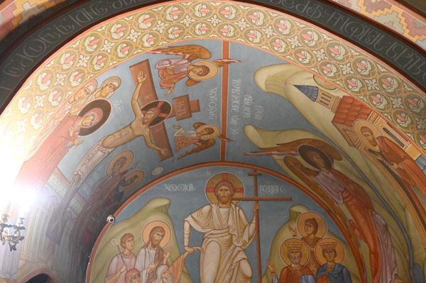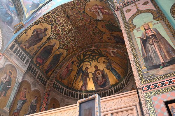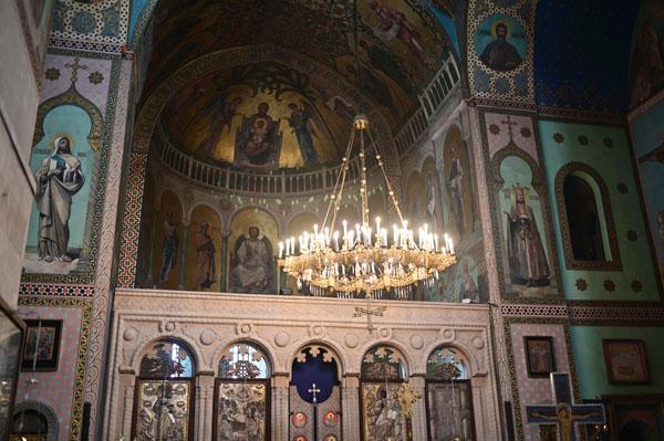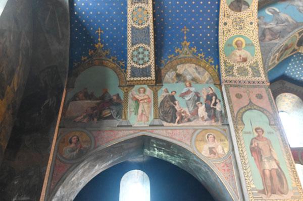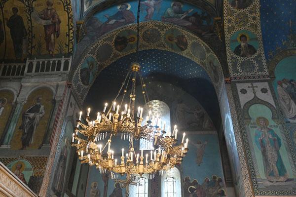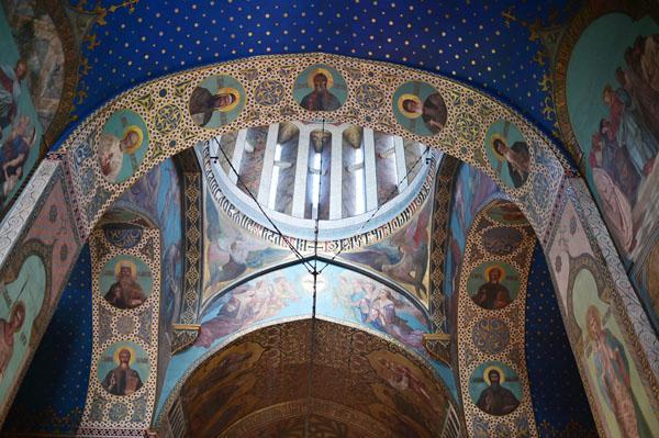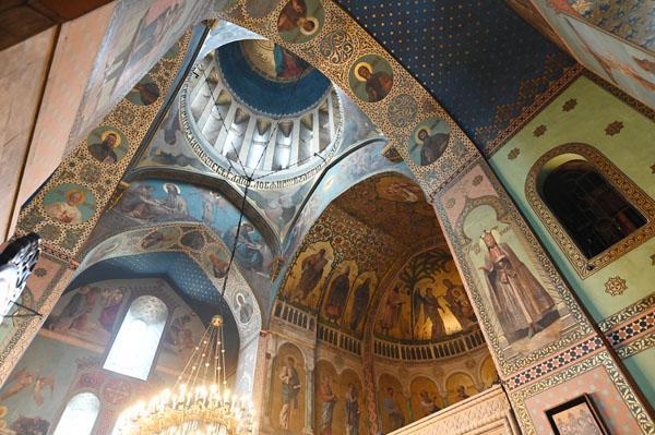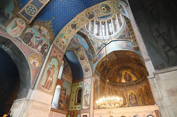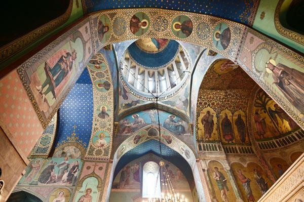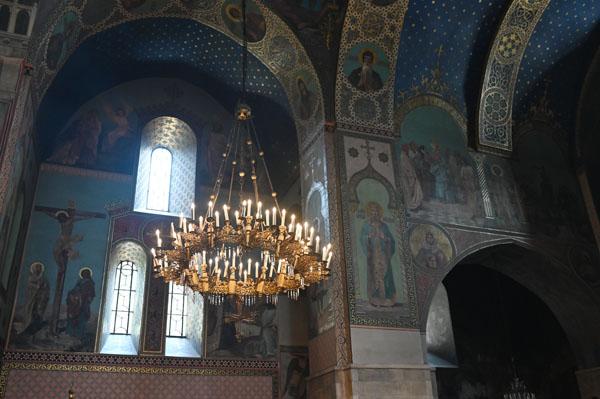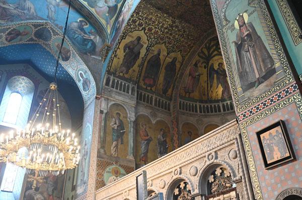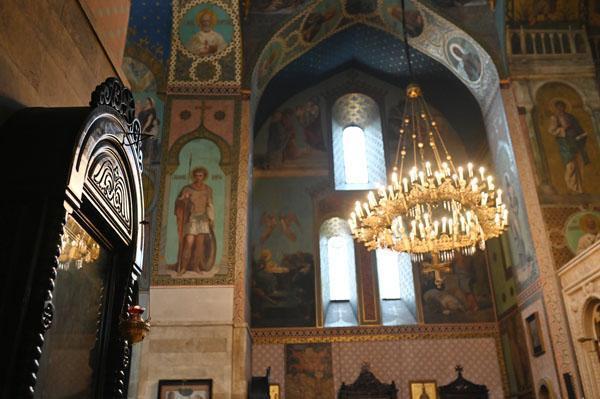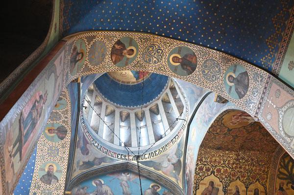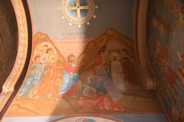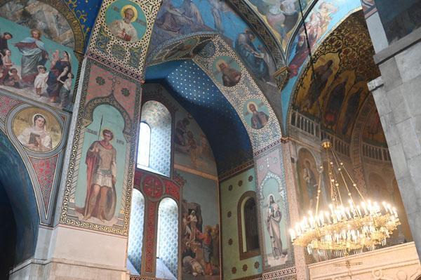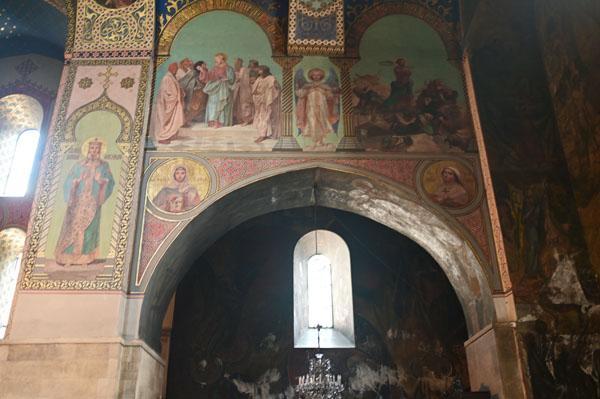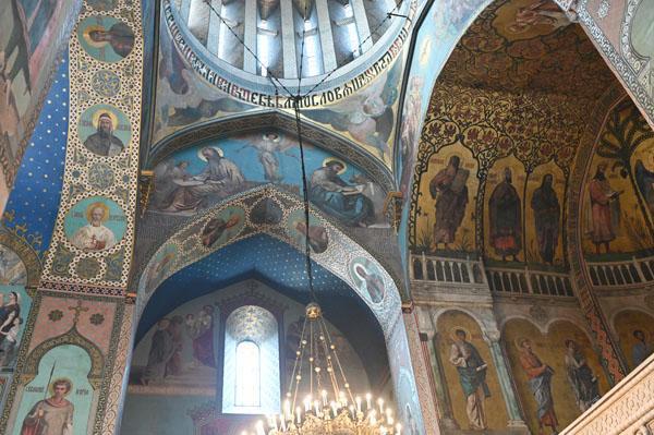 L’intérieur de la cathédrale a pris un aspect différent entre 1850 et 1860, lorsque l’artiste et général russe Knyaz Grigory Gagarin (1810 – 1893) a composé une série intéressante de peintures murales, bien qu’un certain nombre de fresques médiévales aient été perdues dans le processus. Une partie des peintures murales du mur ouest ont été exécutées par l’artiste géorgien Levan Tsutskiridze dans les années 1980. L’iconostase en pierre date des années 1850 et a également été créée selon le dessin de G. Gagarine. Elle a remplacé l’iconostase en bois brûlée lors de l’ invasion perse en 1795.