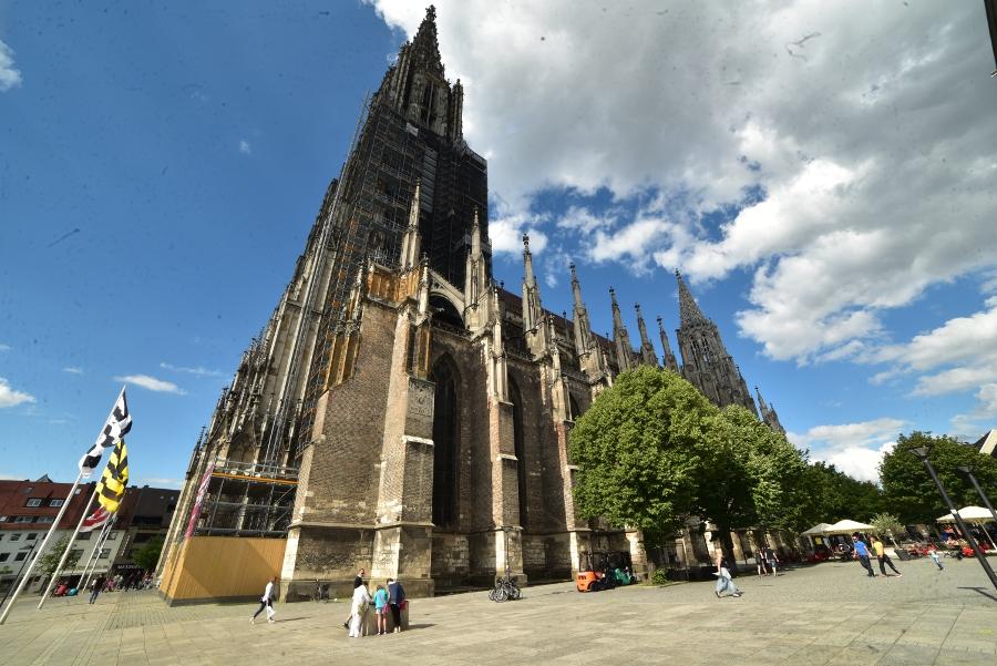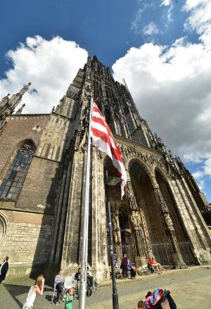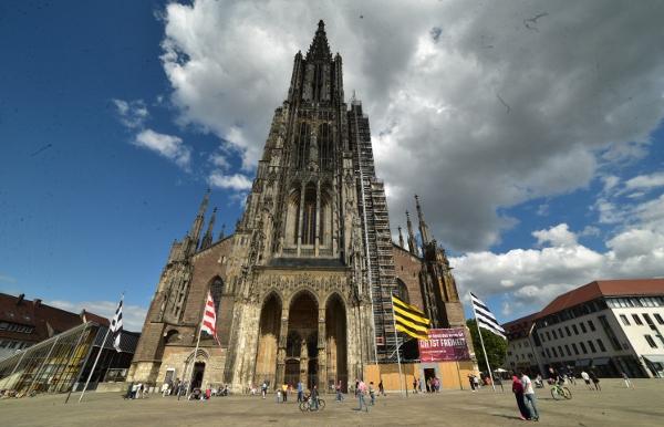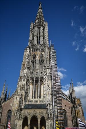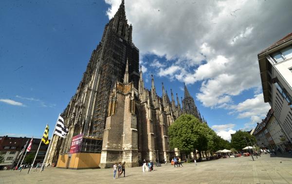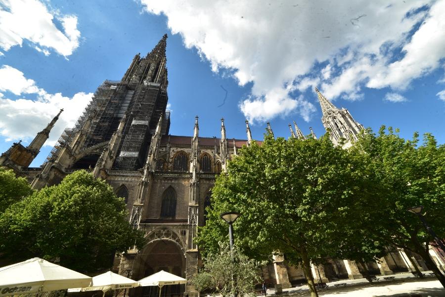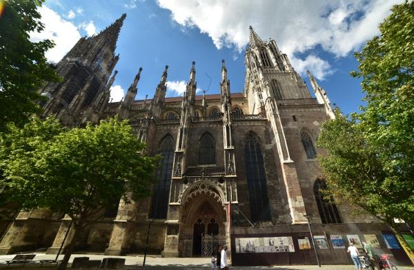 La première pierre de la cathédrale a été posée en 1377. En 1392, Unrich d’Ensingen, principalement connu pour ses travaux sur la cathédrale de Strasbourg a été nommé maître d’œuvre. Quant à sa flèche, toujours l’œuvre du même Ensingen, elle ne fut achevée qu’en 1890, mais selon les plans originaux.