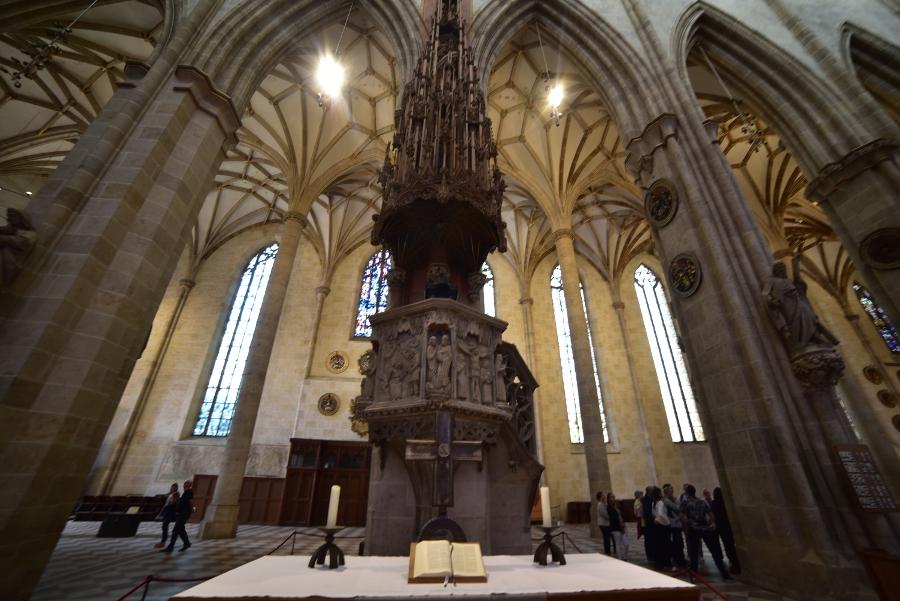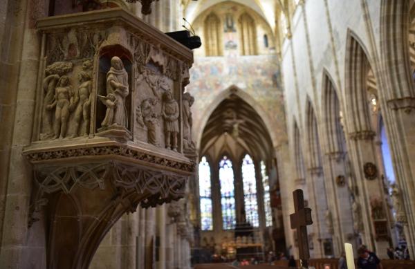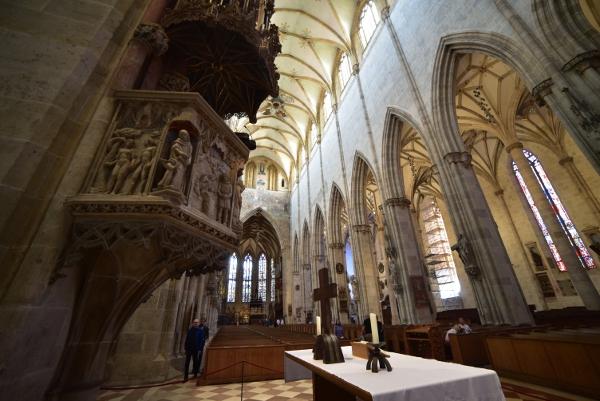 Autre chef-d’œuvre de cette cathédrale : la chaire de Burkhard Engelberg, coiffée d’une flèche en tilleul, œuvre de Jorg Syrlin le Jeune (1510).