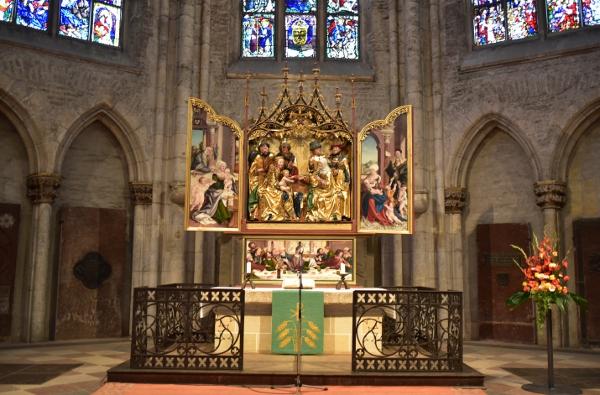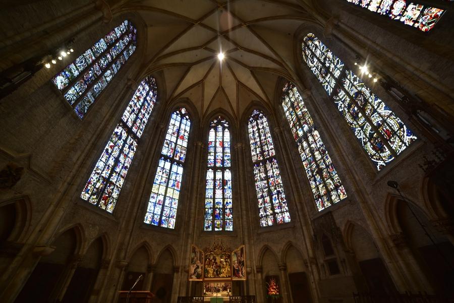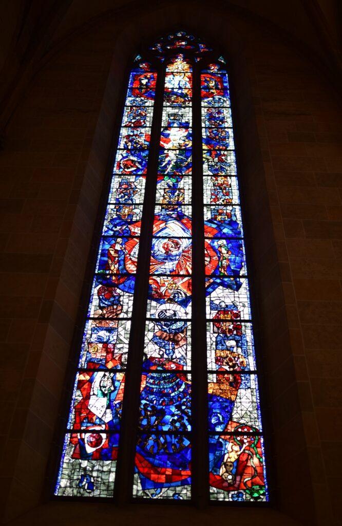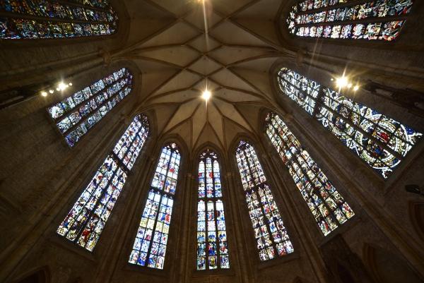 Enfin reste le chœur, ses sublimes vitraux qui semblent soutenir à eux seuls les multiples voûtes, et l’autel où a été placé un retable.