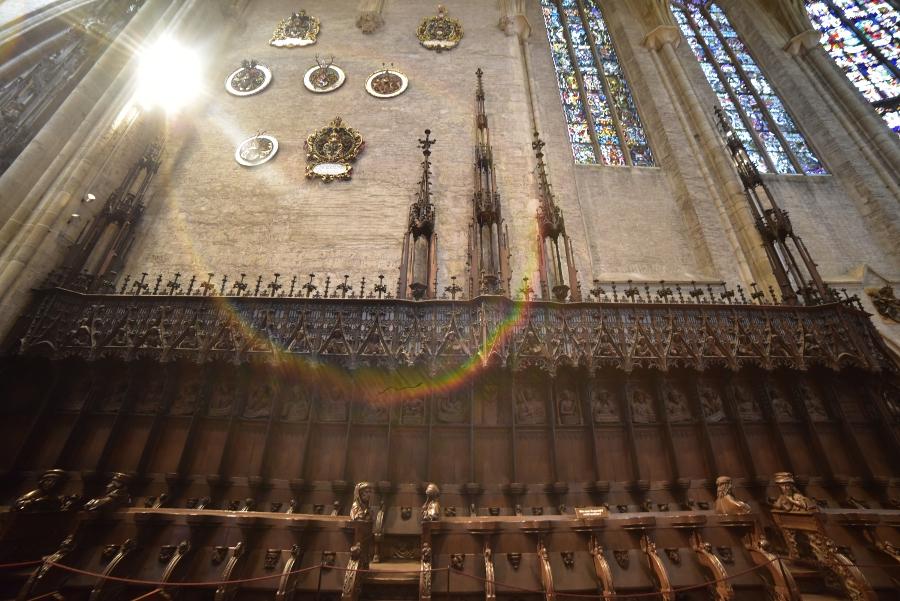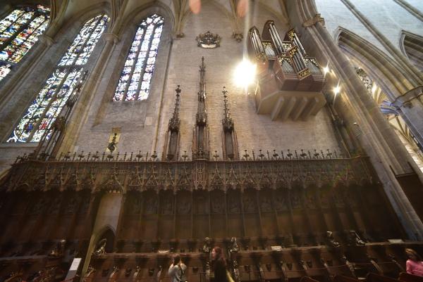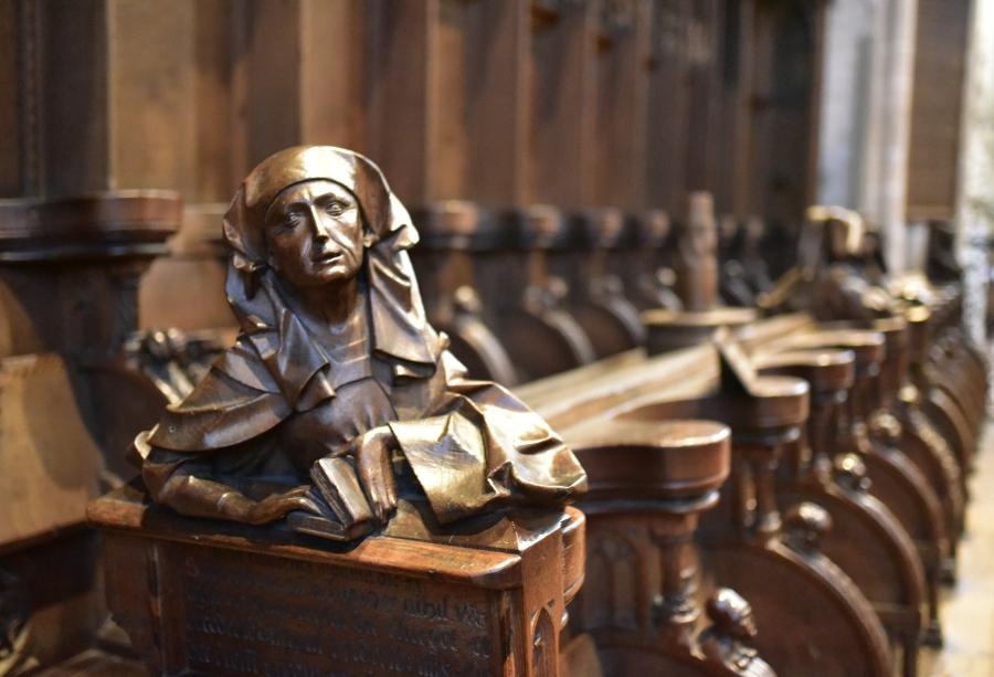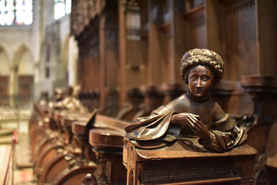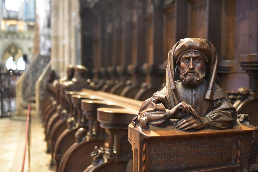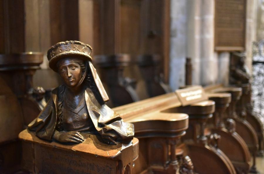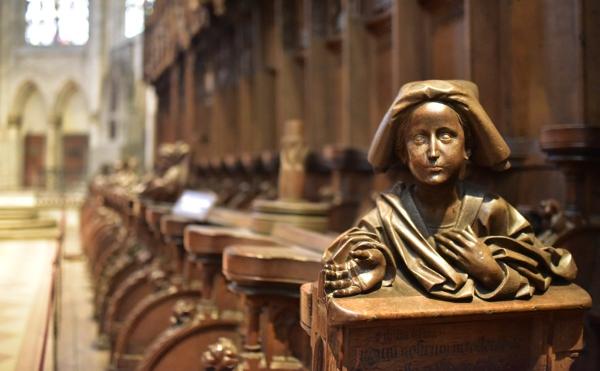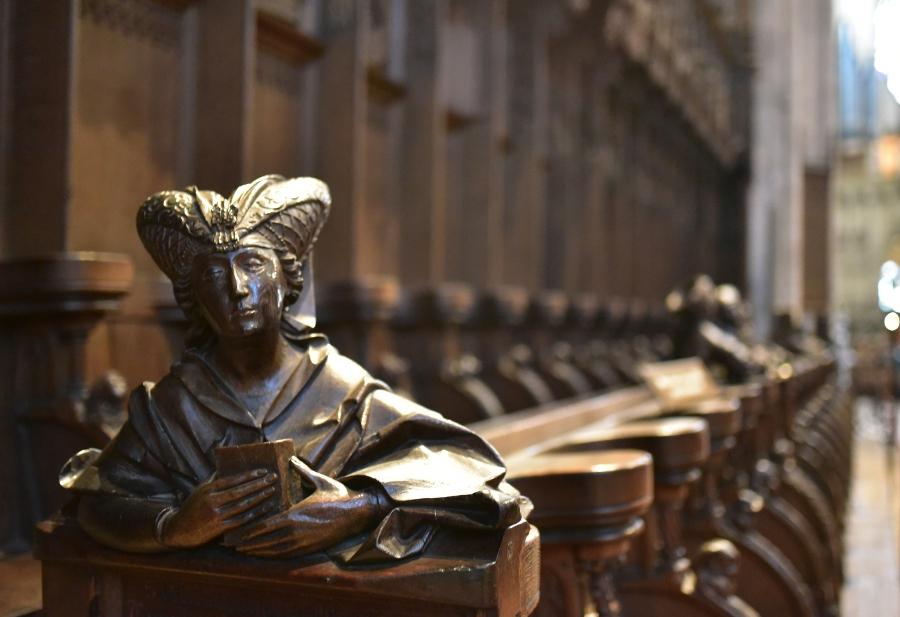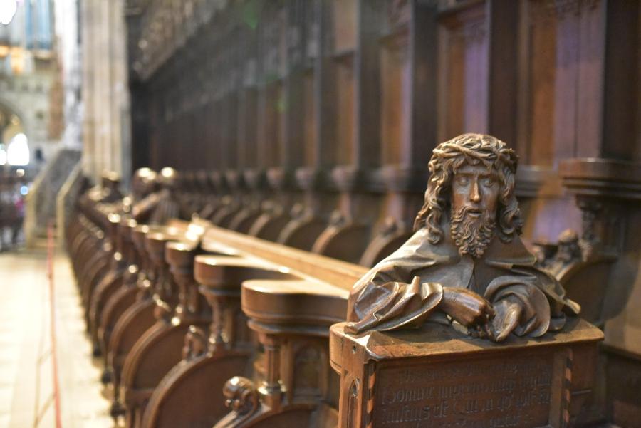 Enfin comment ne pas être stupéfié par la beauté des visages sculptés sur les stalles de bois alignées de chaque côté du chœur de la cathédrale ? Chacun de ces visages représente des personnages bibliques et païens qui se font face. Pour moi, à nul doute, le véritable chef-d’œuvre de cette église. D’une beauté hallucinante qui rend la photographie tout aussi simple d’usage.
