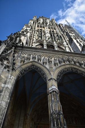 Mais le plus impressionnant reste encore la flèche de la cathédrale. Et pour cause, avec ses 162 m de haut, elle est la plus haute de toute la chrétienté. Pour s’en rendre compte, il suffit de se placer au pied de la tour et de relever la tête. Vertigineux. Plus encore quand on comprend que toute la tour repose sur les piliers, les arches et les voûtes qui donnent sur le narthex. Les séries de sculptures représentant saints et apôtres qui décorent chaque pilier sont d’une beauté et d’un réalisme incroyable.