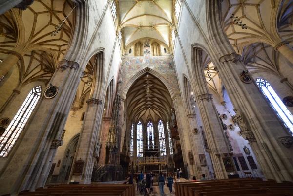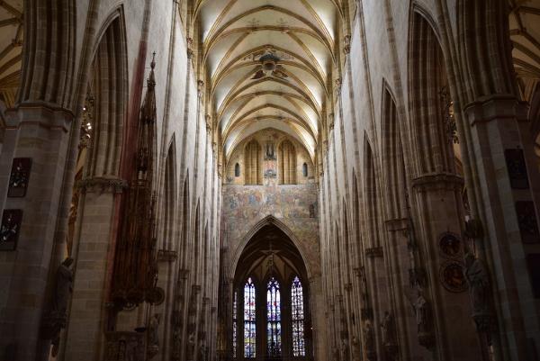 En arrivant par le chœur de la cathédrale, puis en longeant son immense nef, je comprends aussitôt à quel immense navire de pierre j’ai affaire. La cathédrale d’Ulm défie toutes les lois de l’architecture. Impressionnant.