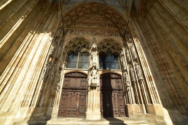 Allez zou, passé le Narthex de la cathédrale, direction la nef et les chapelles de la cathédrale. Mais pas question de pénétrer à l’intérieur sans relever la tête pour admirer le joli portail qui donne accès à l’église.
