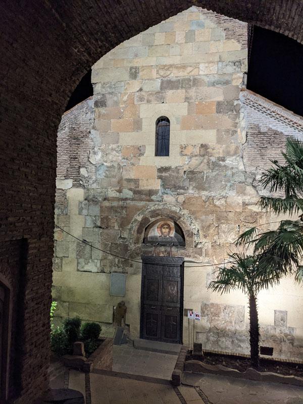 Nous rentrons. Au passage, je regarde vers une des églises que je n’ai pas eu le temps de visiter, mais c’est promis, je reviendrai un jour dans cette ville merveilleuse que j’ai tant aimée. Il est temps de rentrer. Nous remontons la rue Erekle II jusqu’aux ruines de l’ancien palais royal, puis nous bifurquons pour enjamber la rivière au-dessus du pont Sec.