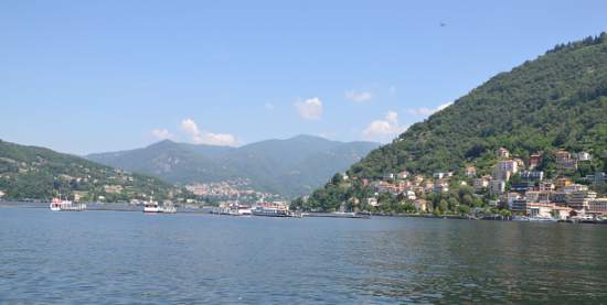 Excellente initiative. Il fait un temps de rêve et le lac est immense. Nous n’aurons pas trop de la journée pour en faire le tour ! Direction Côme, première étape de notre périple. Comme dit petit con, « ça ne casse pas trois pattes à un canard ». Le lac, vu depuis le port de Côme, ce serait un peu comme le lac de Bordeaux vu depuis le parc des expositions… Pas terrible. D’autant qu’on trouve le moyen de se faire mettre dehors par les ouvriers du chantier du coin.