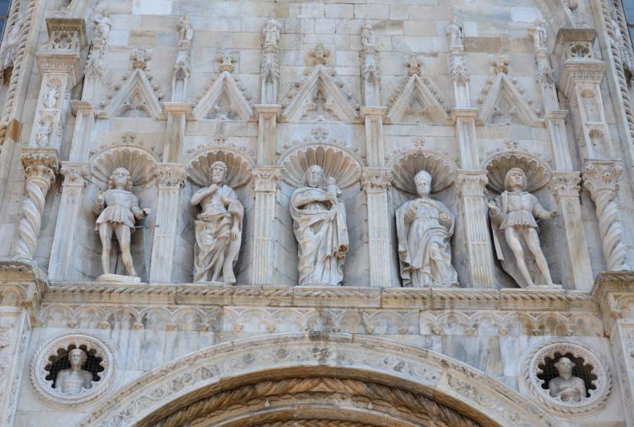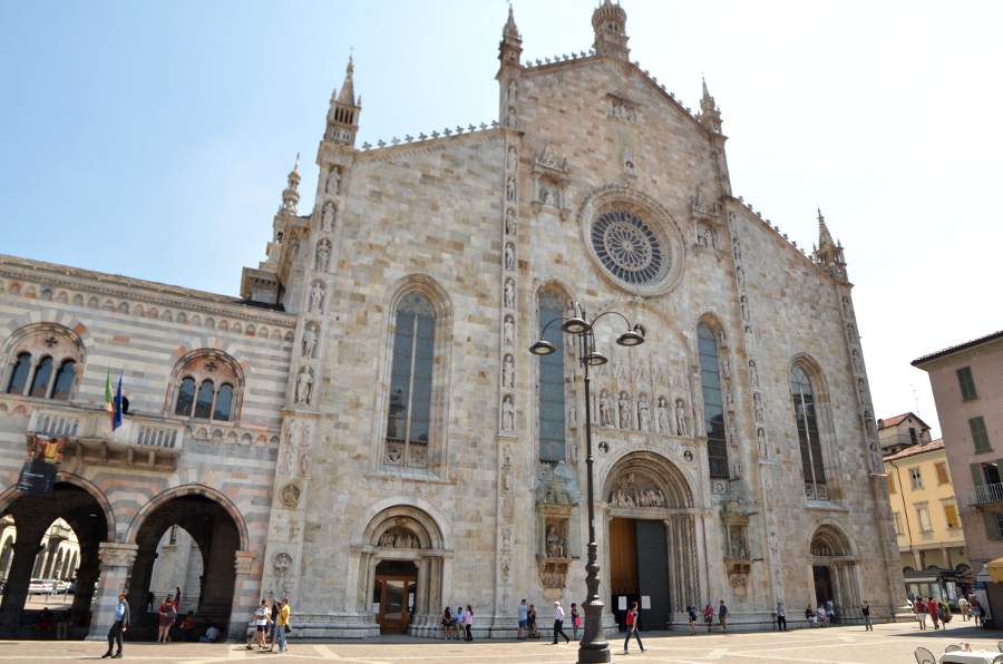 Chef-d’œuvre de l’art lombard pour le Routard. Style Renaissance et de belles statues dans les niches, dont celles de Pline le Jeune et Pline l’Ancien qui encadrent le superbe portail. À l’intérieur, il faut surtout voir les belles tapisseries flamandes.