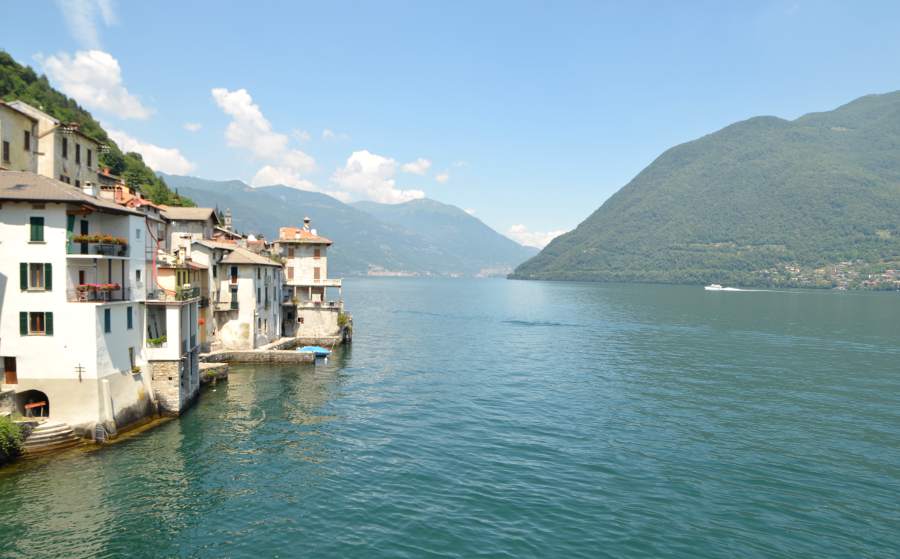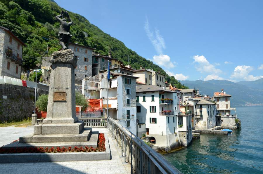 Perchés à flanc de colline, les villages qui se succèdent rivalisent de beauté, jalonnés de villas toutes plus somptueuses les unes que les autres. Les petites ruelles sombres qui, l’été venu, gardent la fraîcheur, contrastent encore avec les places ouvertes sur le lac. Passé Cernobio, c’est un vrai festival, avec en apothéose le sublime village de Brienno entièrement ouvert sur le lac. Là, le monument aux Morts se détache des eaux du lac, donnant un instant l’illusion que le soldat qui le domine pose le pied sur l’eau. Magique.