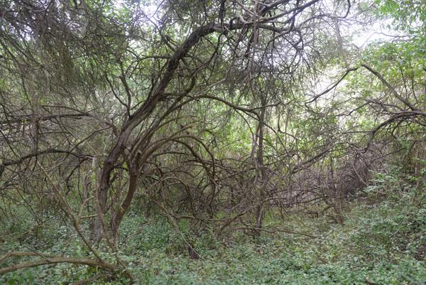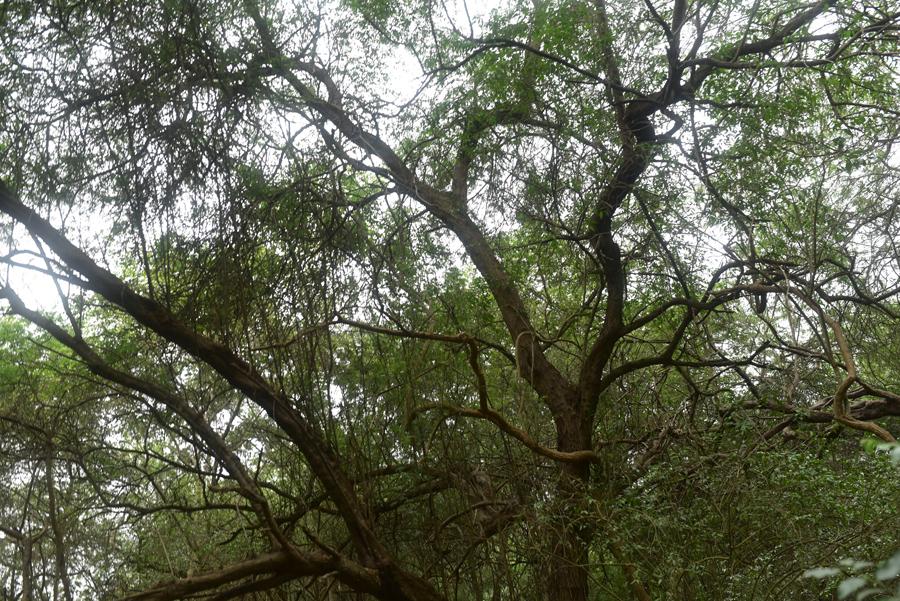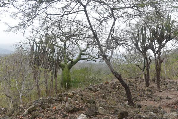 Au sommet du site où demeurait alors le chef du clan, la colline est entourée de ceibos au tronc vert si prononcé. Depuis le sommet de la colline, des guetteurs surveillaient ainsi la communauté, m’explique encore Fernando.