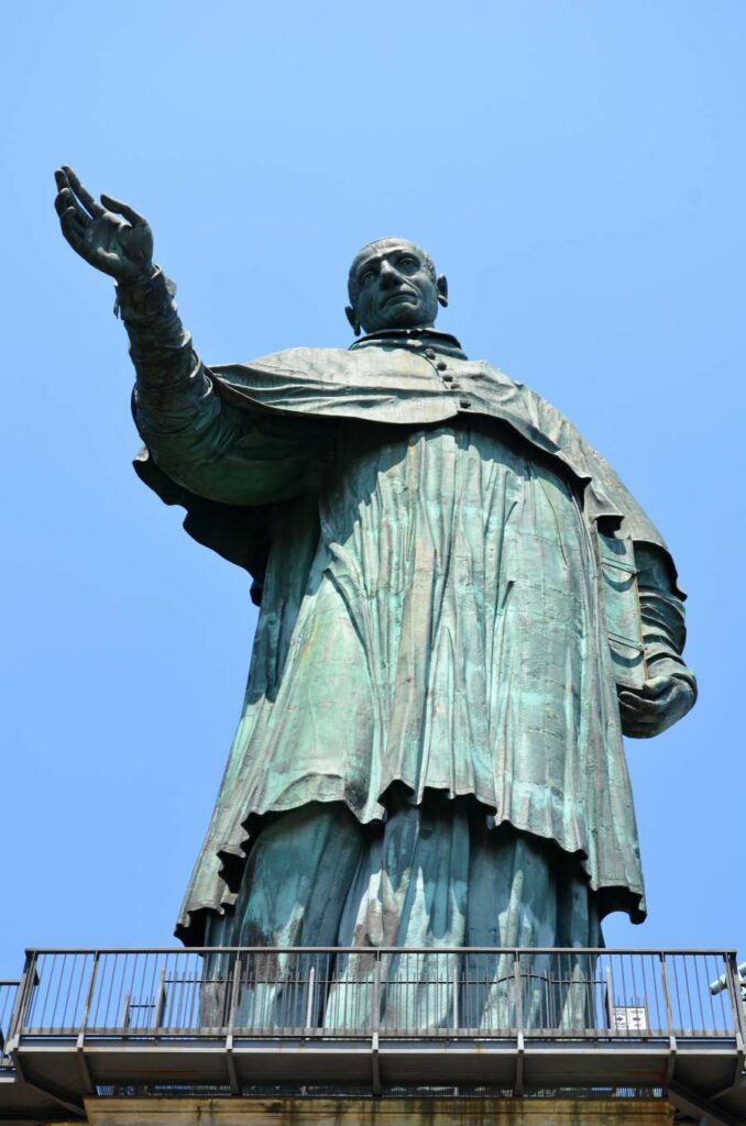 L’idée, aujourd’hui, c’est de pouvoir naviguer vers les îles Borromées, mais ça ne se fera pas depuis Arona. Le bateau du retour est trop tardif. Le temps de dire adieu aux gentils pépés qui m’ont amené jusqu’à l’embarcadère et de jeter un coup d’œil sur l’immense port qu’est Arona, et nous filons directement jusqu’à la statue de San Carlo, l’attraction numéro un de la ville, statue géante d’une trentaine de mètres qui surplombe tout le lac et au sommet de laquelle on accède par un escalier en colimaçon et une échelle de mur.