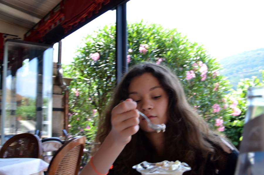 Premiers pas sur Isola Bella. Arrivés sur le quai, on fait un petit tour rapide sur les environs : une succession de rues minuscules et de boutiques artisanales. Le palais ? Il faut gagner l’autre pointe de l’île. Ok, on mange d’abord et on ira voir tout ça après.