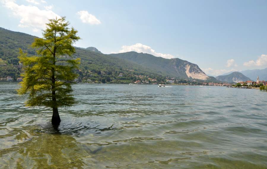 On redescend sur terre et on file droit vers Stresa, d’où on pourra prendre le bateau pour les îles Borromées. La route le long du lac n’a rien à voir avec la rive du lac de Côme. Certes, les eaux sont encore plus bleues ici (les montagnes qui entourent le lac sont moins hautes et se reflètent moins dans l’eau), mais on ne retrouve pas le charme des petits villages escarpés qui menacent de tomber à l’eau.