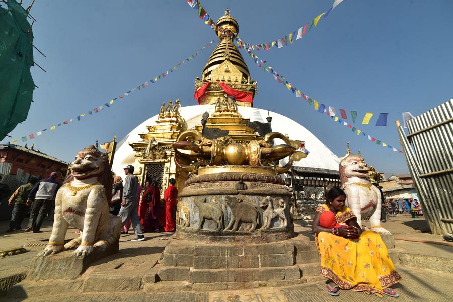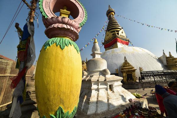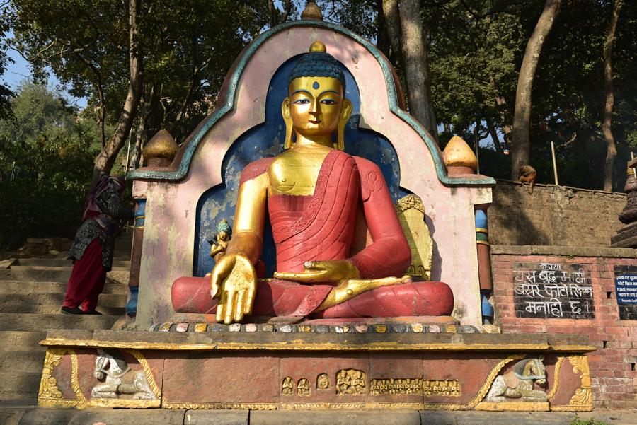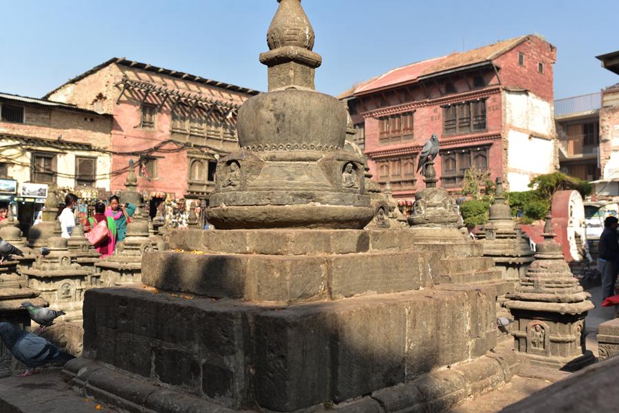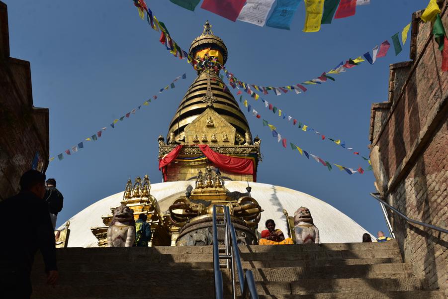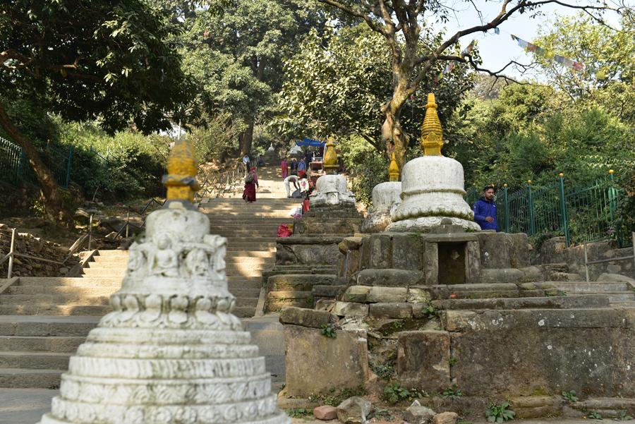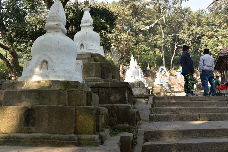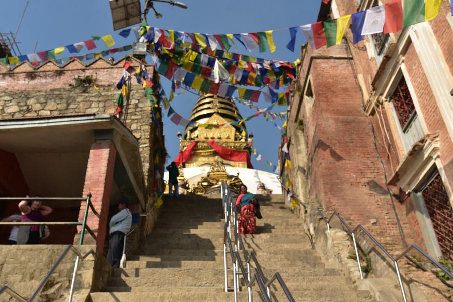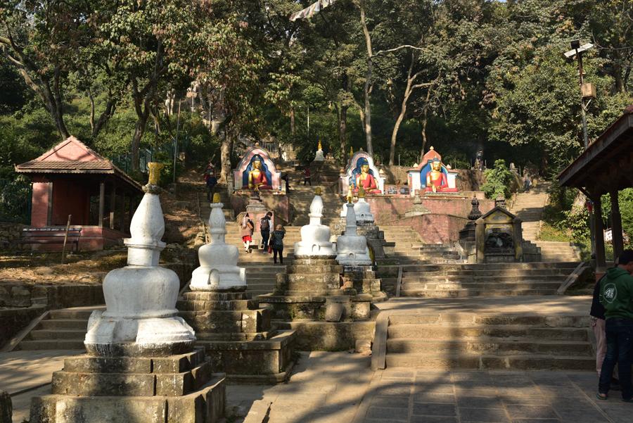 On grimpe alors les 365 marches en passant au milieu des chaitiya et des statues d’Akshobhya datant de la période Shah.