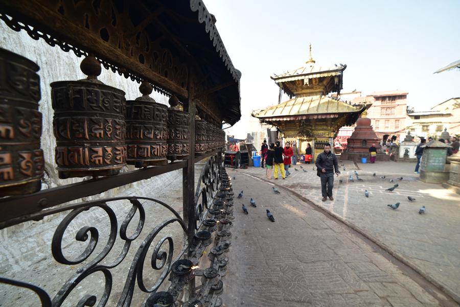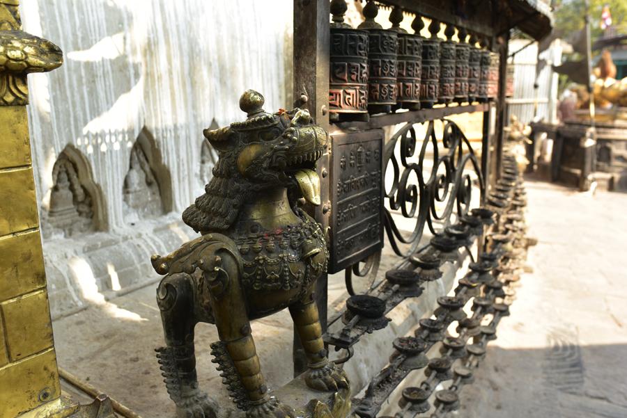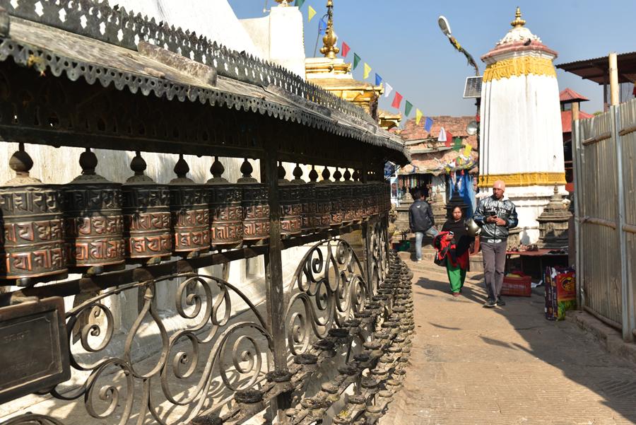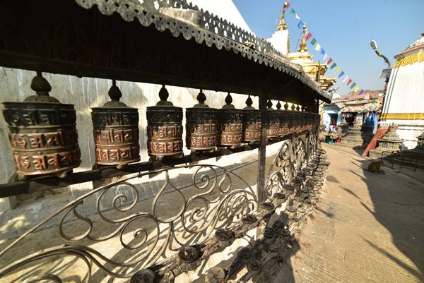 Une galerie de 211 moulins à prières fait le tour de la coupole, chacun portant le mantra sacré Om mani padme hum (ô toi, joyau dans la fleur de lotus”).