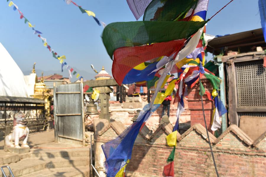 Allez zou, avant de redescendre la colline sacrée, je m’écarte un peu du stûpa central pour jeter un coup d’oeil sur le panorama. Katmandou s’étend jusqu’à perte de vue, mais difficile de bien voir avec toute cette brume polluée qui recouvre ses rues et ses monuments.