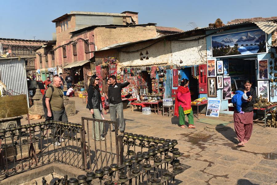 Le stûpa est entouré d’aubeges de pélerins, d’habitations, de boutiques de souvenirs, de monastères tibétains (gompas) qui résonnent de prières et de fanfares, et de cinq sanctuaires représentant les trois éléments (vent, terre, feu) ainsi que deux serpents mythologiques.