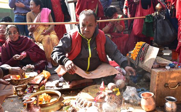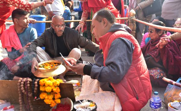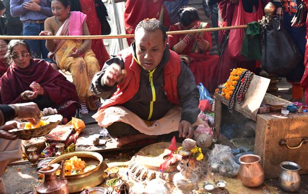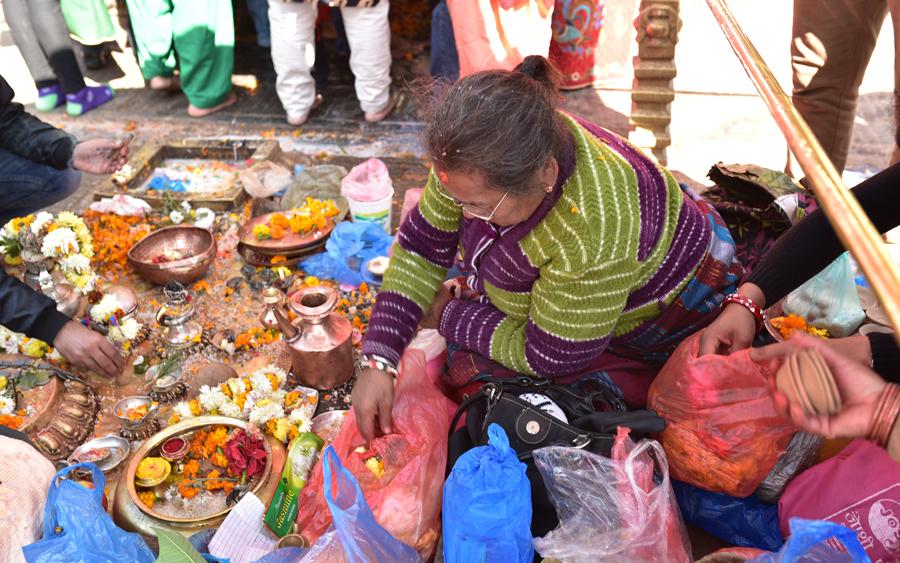 Autour du site, les rites traditionnels vont bon train, entre incantations, offrandes et autres mixtures divines. C’est l’effervescence autour des moines qui dirigent les opérations.