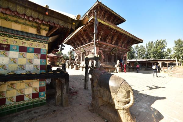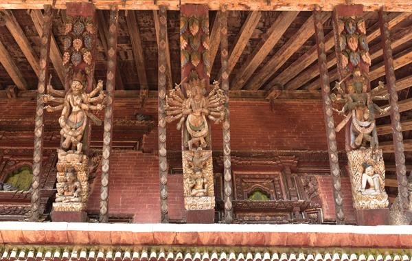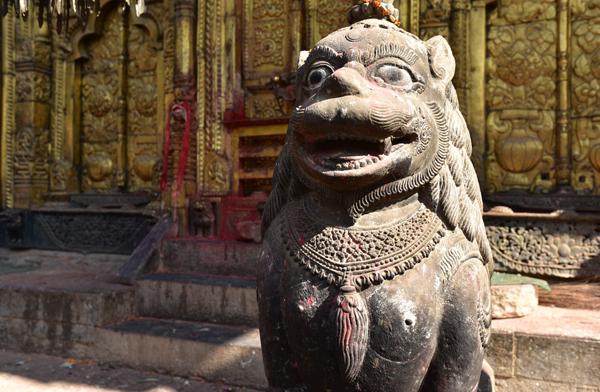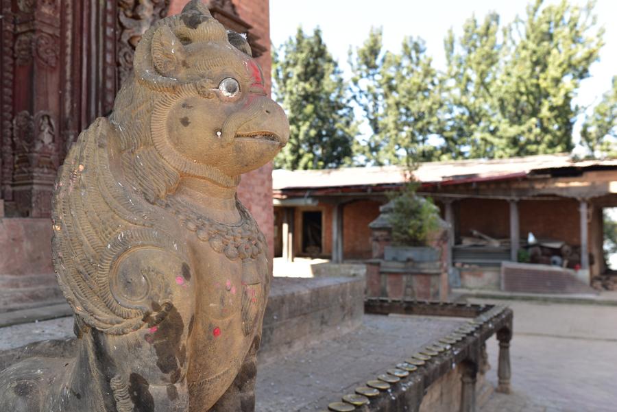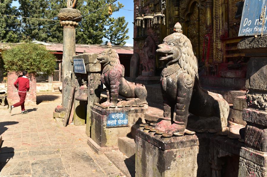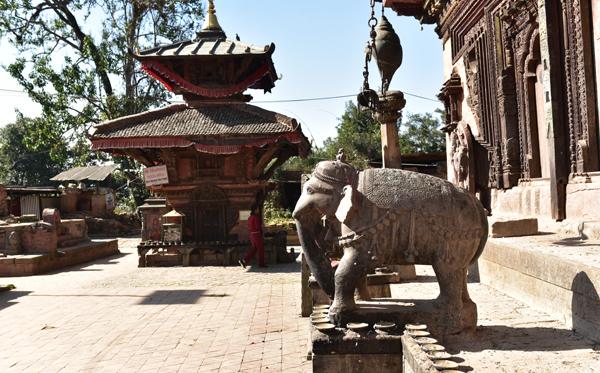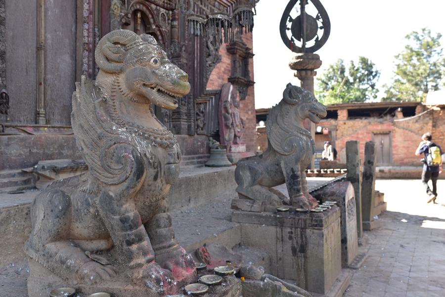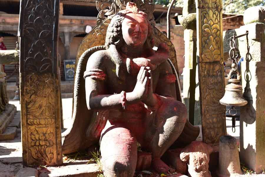 Changu Narayan occupe une colline à 4 km au nord de Bahktapur. Une inscription datant de 464 ap. J.-C. (la plus ancienne découverte au Népal) gravée dans une colonne devant le temple principal révèle comment le fis du roi Manadeva dissuada sa mère de se laisser brûler vive à la mort de son époux… Sympa comme introduction !