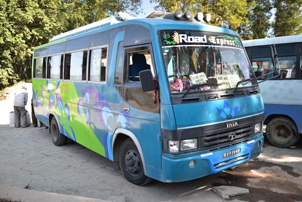 Jeudi 23 novembre. Bon, comme aux premiers jours de notre arrivée au Népal, nous reprenons le chemin des bus locaux. Du coup, ce matin, nous nous levons de bonne heure pour aller prendre un bus pour Changu Narayan, un petit village perché haut dans la montagne qui a la perticularité de vouer un culte de Vishnou. Pour nous y rendre, nous reprenons d’abord le bus pour Bakhtapur… Si, si… Le même que nous avions pris il y a 15 jours. Mais cette fois-ci, le trajet me semble beaucoup moins long. Et même si je ferai une grande partie de la route debout… Welcome in Népal ! Arrivés à Bakhtapur, on longe un moment la voie rapide à pied, puis on bifurque vers le centre-ville pour nous retrouver encore au même endroit que la dernière fois. Il reste encore à marcher un petit quart d’heure au milieu des voitures et de la pollution pour trouver l’arrêt de bus. Vingt petites minutes d’attente, puis un petit bus bleu arrive enfin pour nous emmener au somme de la colline où se dresse le village de Changu Narayan. Ouf !