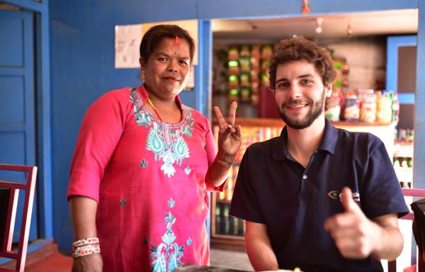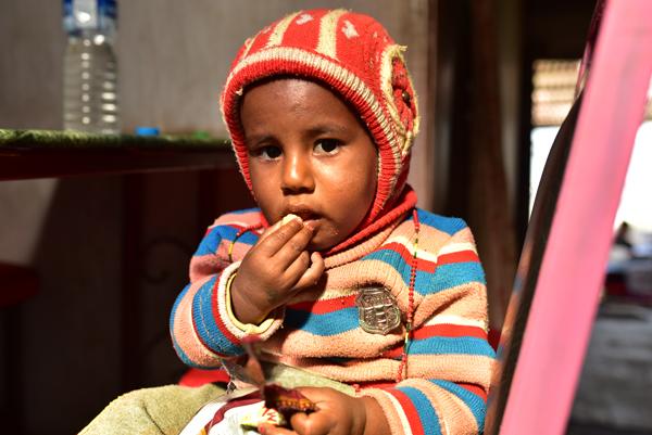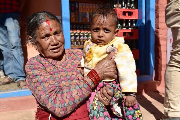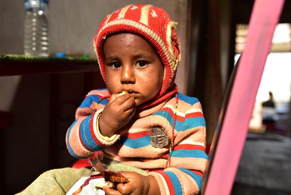 Bon avant d’aller visiter le temple, je propose d’abord à Pierre d’aller nous restaurer un peu… J’ai une faim de loup ! Du coup, on trouve une petite gargotte tenue par une grand-mère qui garde sa petite-fille… Je ne résiste pas à l’envie de prendre la petite en photo.