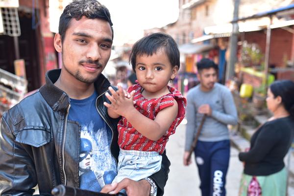 Devant la boutique, des musiciens d’une troupe locale se rassemble. Tout à l’heure, un mariage traditionnel sera célébré devant le temple de Vishnou. Un jeune père tient son enfant dans ses bras.