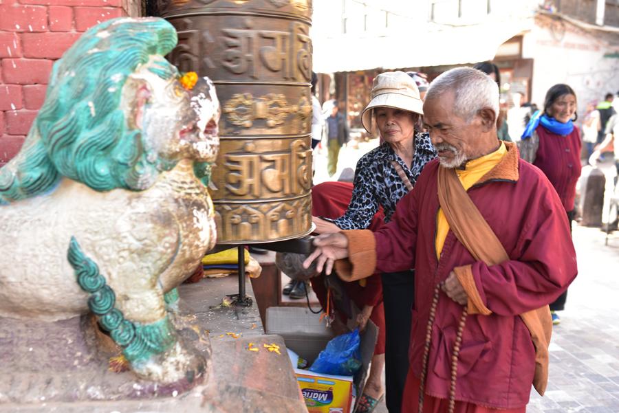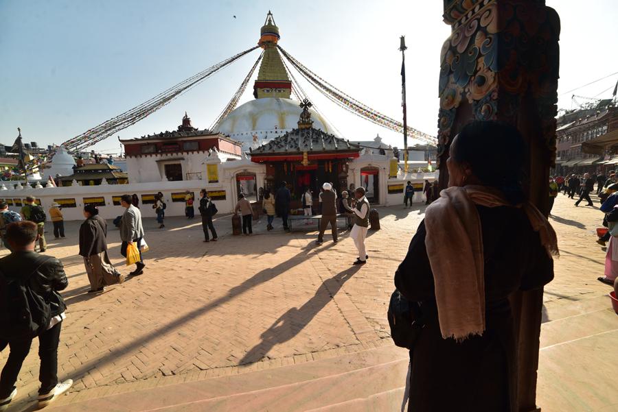 Il est vrai que Bodhnath demeure le principal sanctuaire bouddhiste de toute la vallée de Katmandou. Les pèlerins tibétains font le tour du stupa dans le sens des aiguilles d’une montre en faisant tourner les tambours à prières portant le mantra Om mani padme hum.