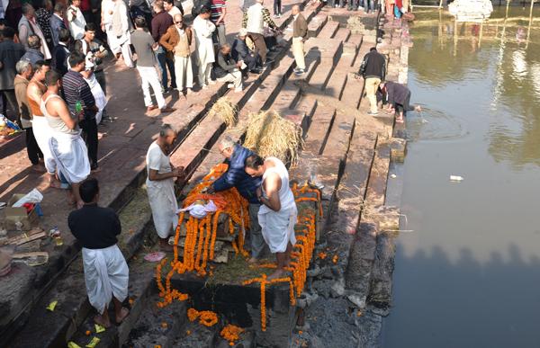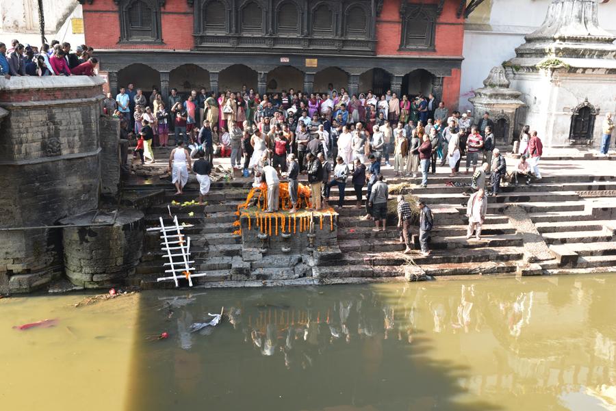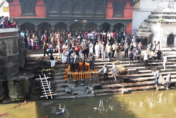 Placées sur les marches des quais de la Bagmati, les dépouilles sont exposées pour que les familles puissent leur rendre un dernier hommage. Quelle émotion. Quand il n’y a pas d’incinération, ces ghâts sont le lieu de bains rituels.