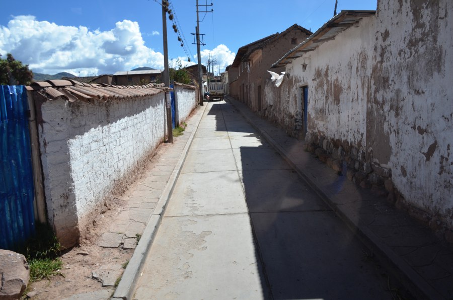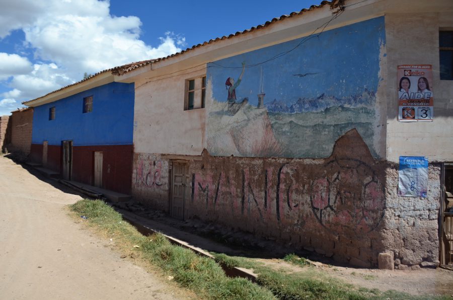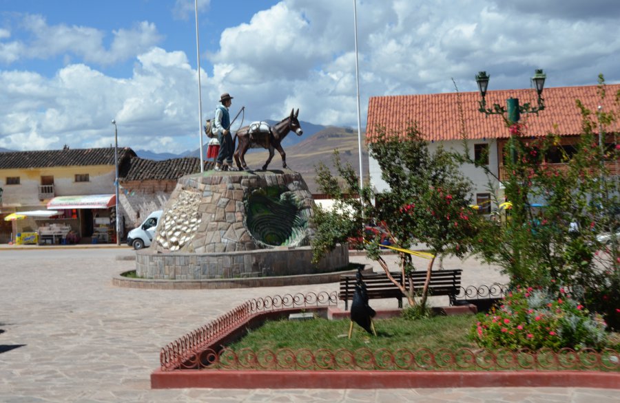 Retour au petit village de Maras qu’on croirait tout droit sorti d’un western spaghetti. Ruelles étroites et poussiéreuses. Maisons blanches et bleues. Le tout posé sur le bord du plateau andin, face aux montagnes. Magique.