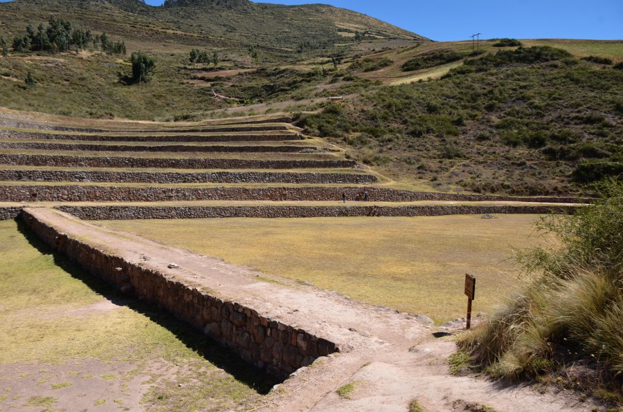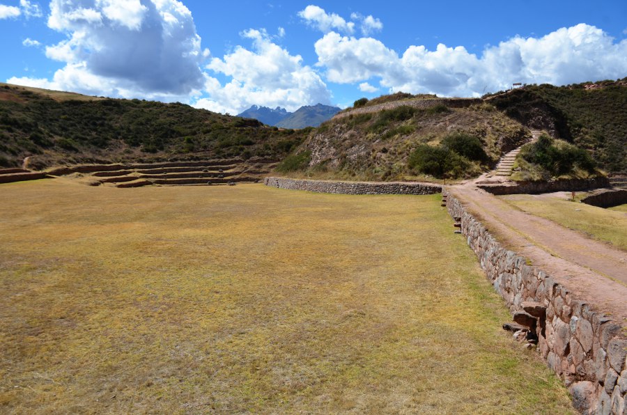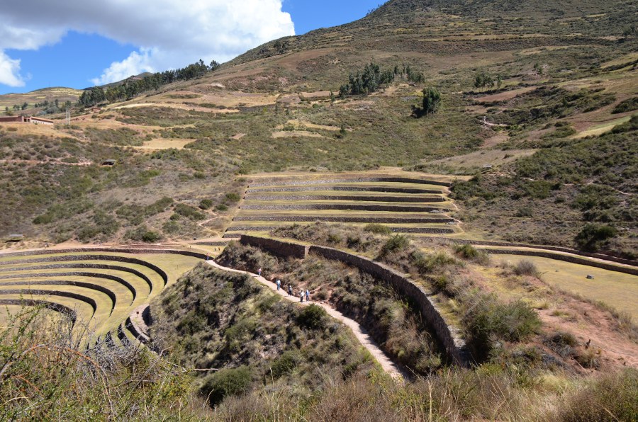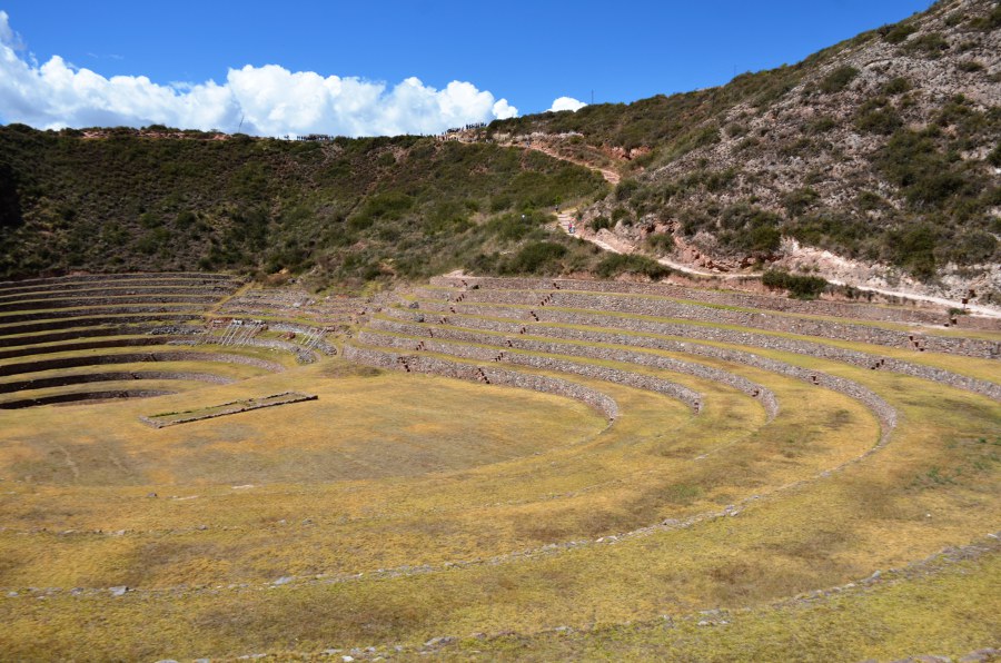 La visite de la vallée sacrée des Incas se poursuit. À 9 km environ de Maras, par une belle piste traversant le plateau, on atteint les ruines de Moray.