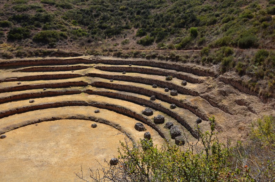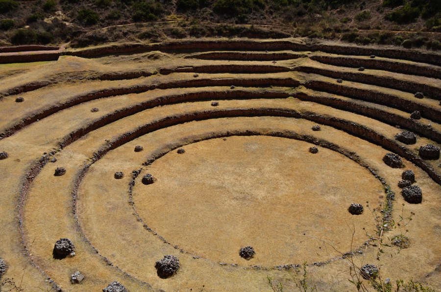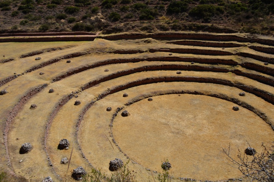 Selon les archéologues, les terrasses de Moray ne seraient rien d’autre qu’un centre de recherches agronomiques ! Leur agencement, du bas vers le haut, permettait de simuler plusieurs sortes de microclimats, et ce, au gré des anneaux concentriques, la température étant plus élevée en bas et plus fraîche en hauteur. On pouvait donc cultiver des produits tropicaux en bas, malgré les mois d’hiver rigoureux de mai et juin.
